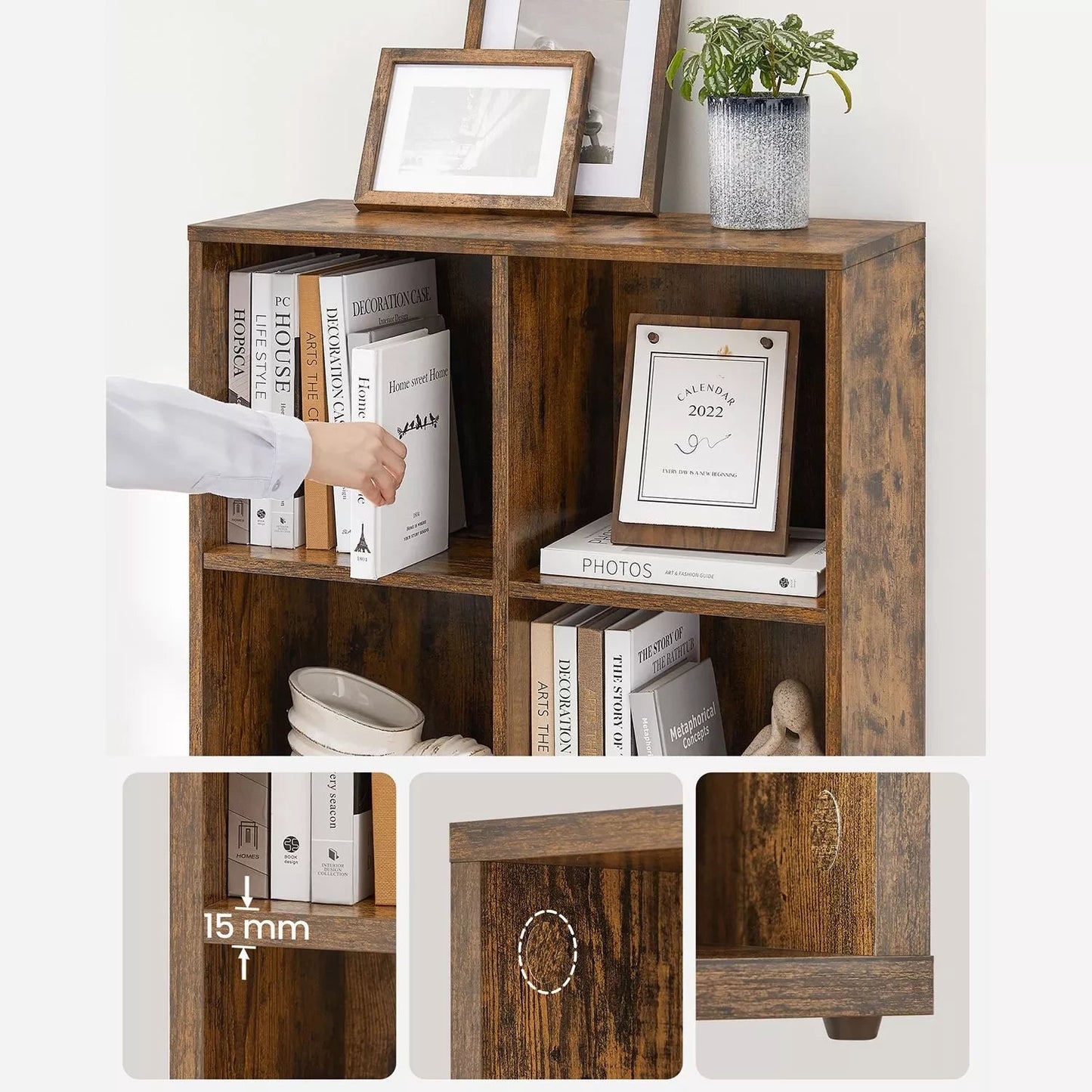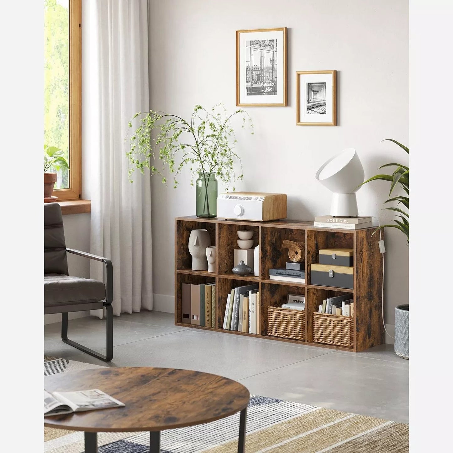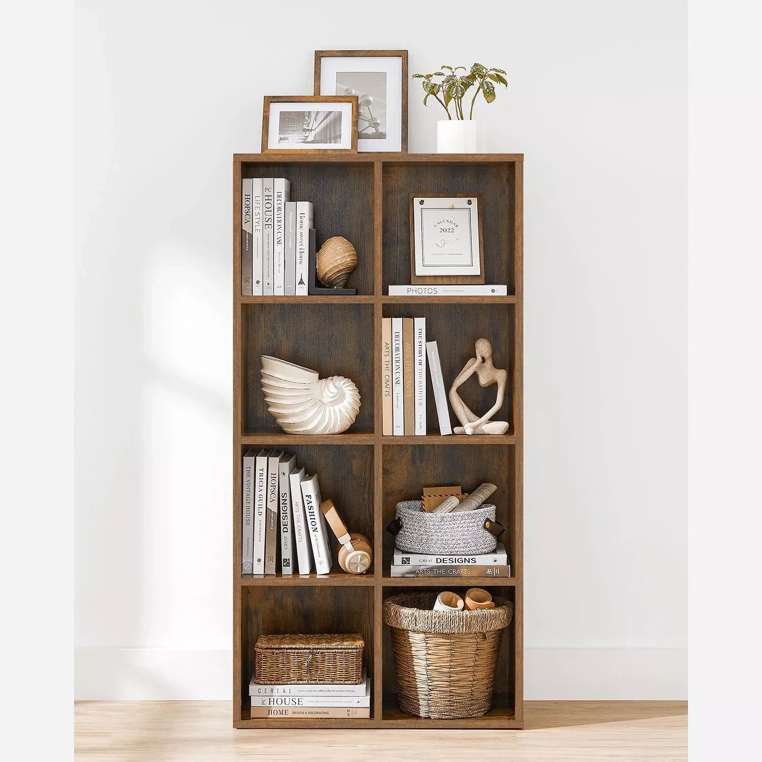 In And OutdoorMatch Bookcase Melvina - Industrial - 8 compartments - Brown - Bookshelf - Living room, bedroom and children's room - Wood - MDF