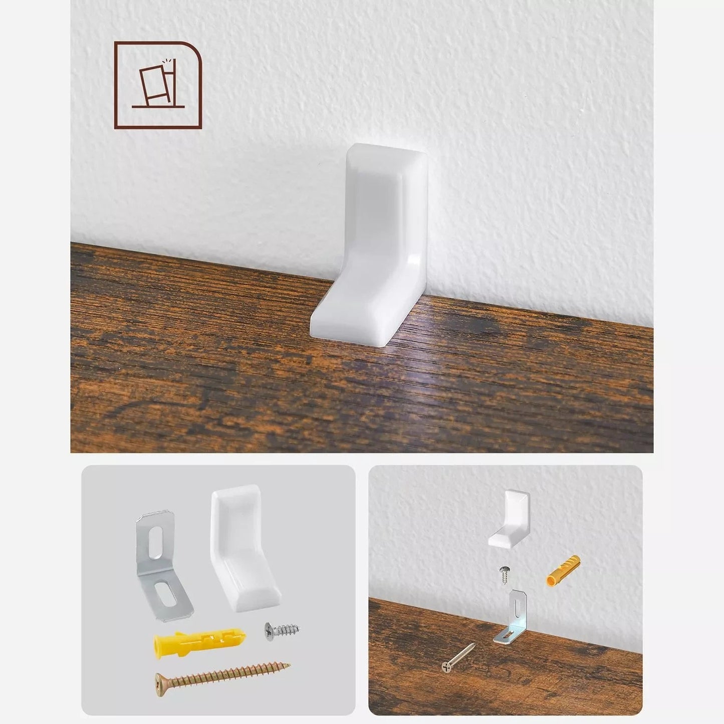 Give your book collection a suitable place in your home! Our bookcase is the perfect addition to your interior style and creates a natural atmosphere thanks to its vintage brown color. Whatever style your home has, be it country, vintage, industrial or shabby chic, our simple and rustic freestanding shelving units are sure to complement your style. Place this bookshelf in the children's room for children's books or in the living room next to your reading chair or simply place it in your bedroom. It is also an excellent shelf as a TV shelf. With the included detailed assembly instructions in several languages, this shelf is very easy to assemble even for a beginner. Plus, all parts are clearly labeled, so you can quickly find what you need. The side planks are grooved for easy insertion of the back panel. Clips can be attached to the back wall for more stability. A spare screw is also included in the scope of delivery. In addition, our bookshelf is equipped with anti-tip devices for greater safety. Pads for the plank protect your floor against scratches and damage. Product details: - Color: vintage brown - Material: chipboard - Dimensions: 30 x 65.5 x 129.5 cm (D x W x H) - Weight: 24.3 kg Max. static load of each compartment: 15 kg - Max. static load of the top shelf: 40 kg Scope of delivery: - 1 x bookshelf - 1 x accessory package - 1 x instructions Inand Outdoormatch Notes: - Clean the bookshelf with a damp cloth and dry it.