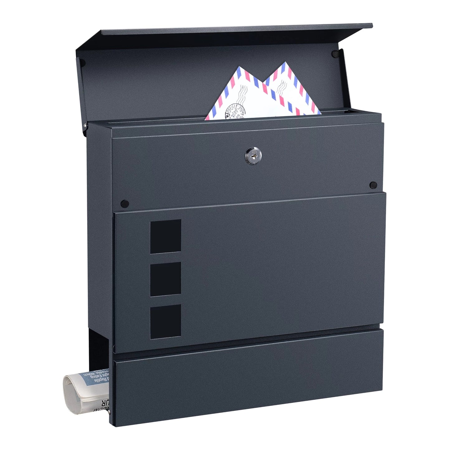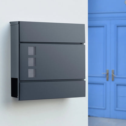 In And OutdoorMatch Letterbox Derick - 37x37x10.5 cm - Steel - Anthracite - With newspaper cover - Lockable - Protective flap