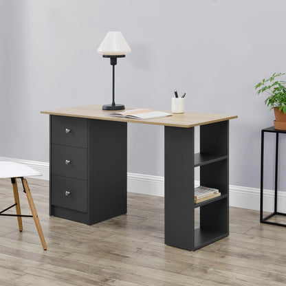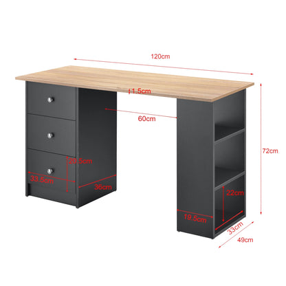 In And OutdoorMatch Desk Genoveva - With 3 Drawers - 120x49x72 cm - Dark gray and wood-colored - Chipboard - Stylish design