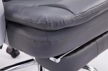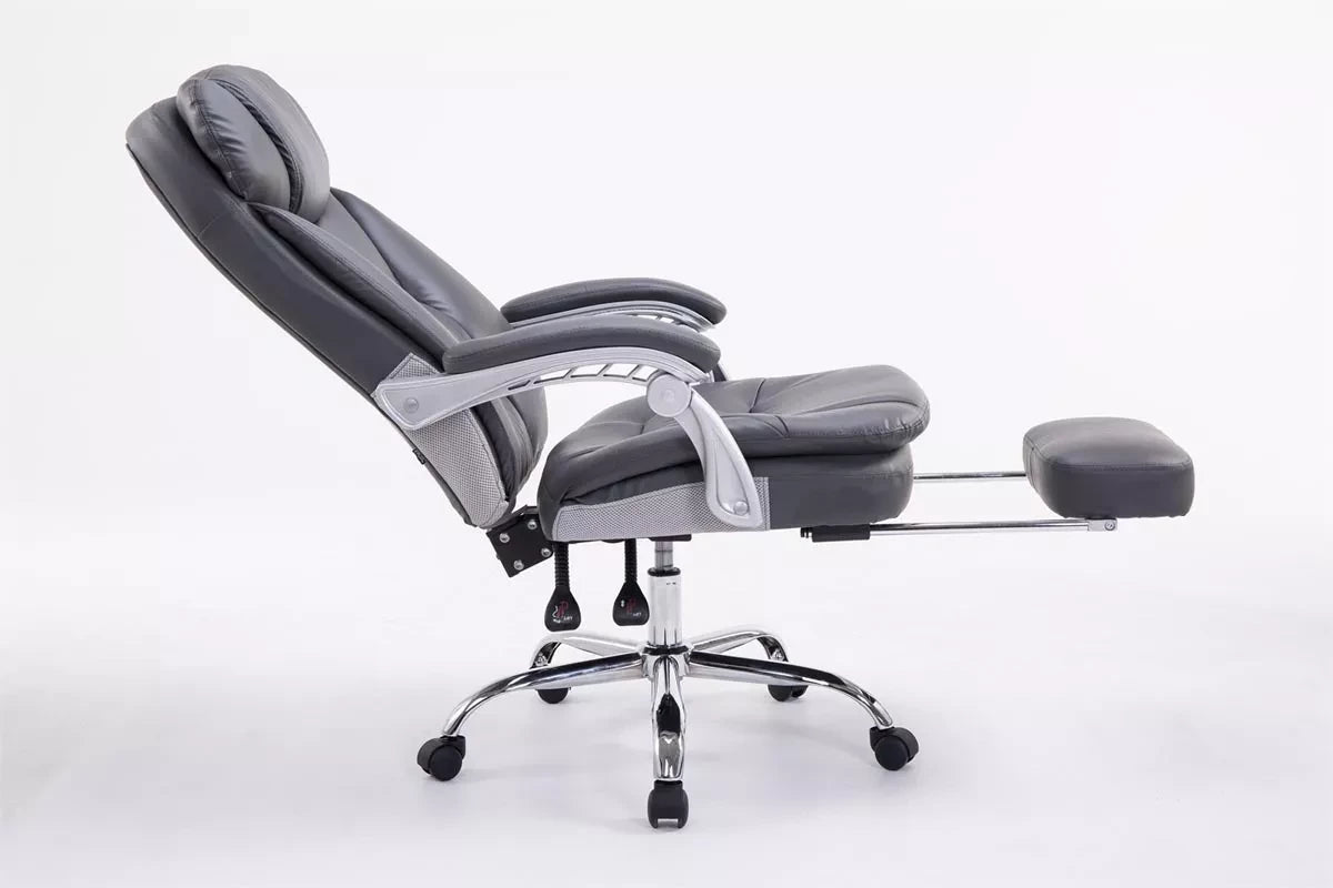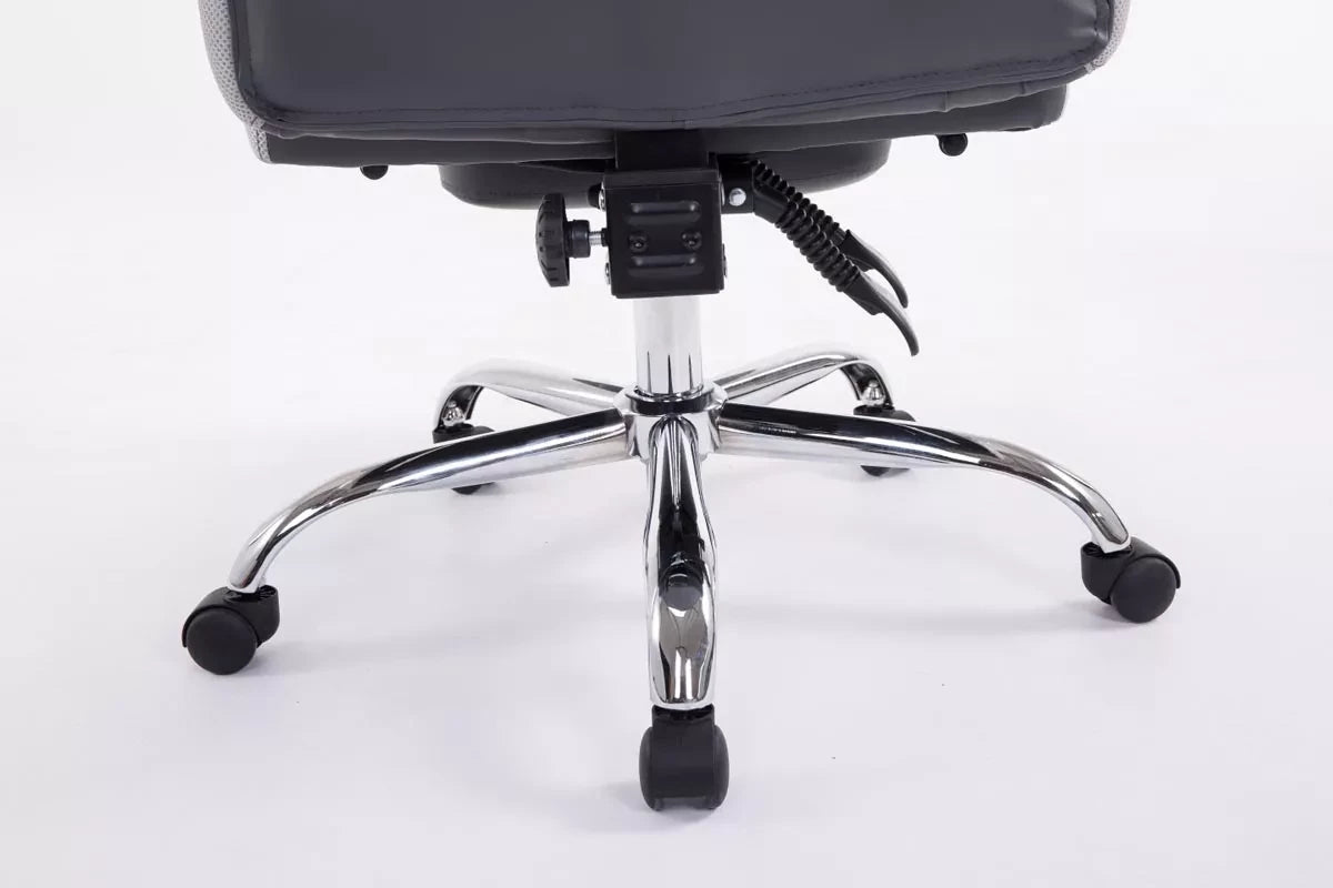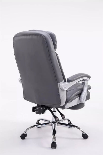 With the XL office chair, comfort with a robust appearance is the order of the day, because it is particularly suitable for tall and heavy people. The high-quality upholstery and the easy-care artificial leather upholstery provide a comfortable seating feeling that is retained even after a longer stay. The easily adjustable footrest and backrest also provide a pleasant break in between, during which you can lean back and put your feet up. Thanks to the infinitely adjustable seat height, the Troy XL office chair always guarantees ergonomic sitting. It stands safely on five smooth-running wheels and a metal frame with a chrome look. Whether it is hard floors or carpets, you always roll easily and loosely over the floor.