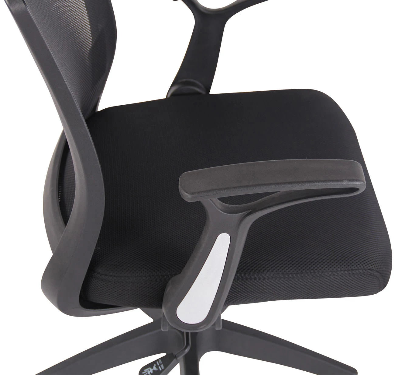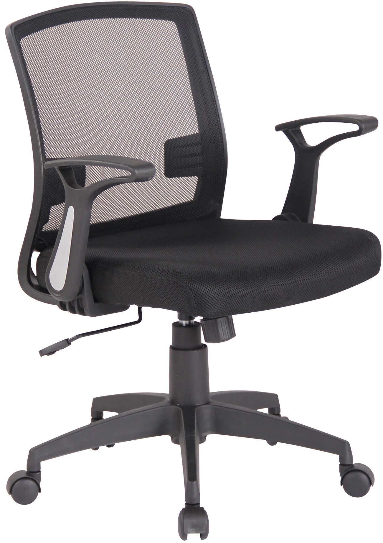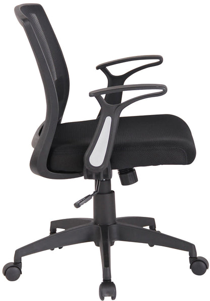 This swivel chair convinces with its modern design and solid workmanship. Seating comfort is guaranteed by the padding and the ergonomic backrest. The stepless height adjustment and tilt mechanism make it possible to sit comfortably for several hours. In addition, this office chair has an easy-care mesh cover, which not only looks beautiful, but is also particularly breathable. The armrests can also be pushed back when not needed. The office chair stands firmly on a plastic frame with five smooth-running wheels. This allows you to always roll easily and loosely over the floor, regardless of whether it is hard or carpeted.