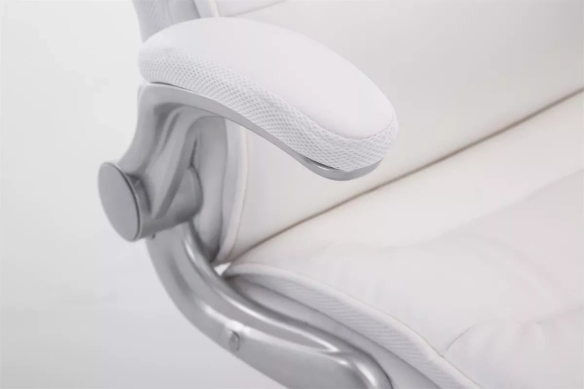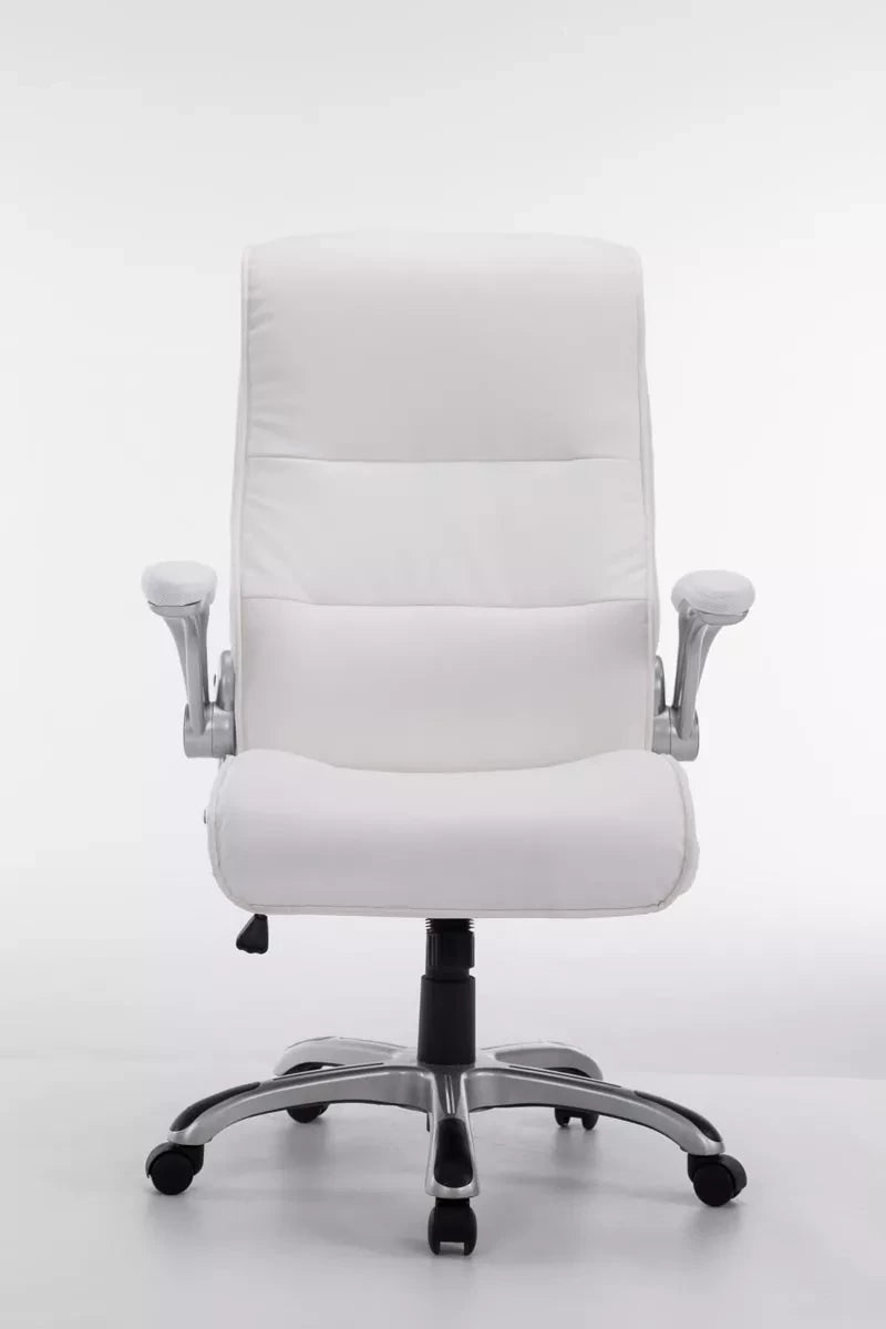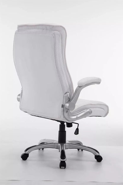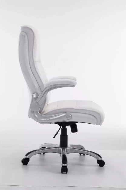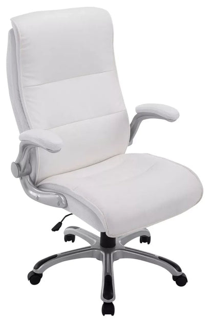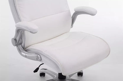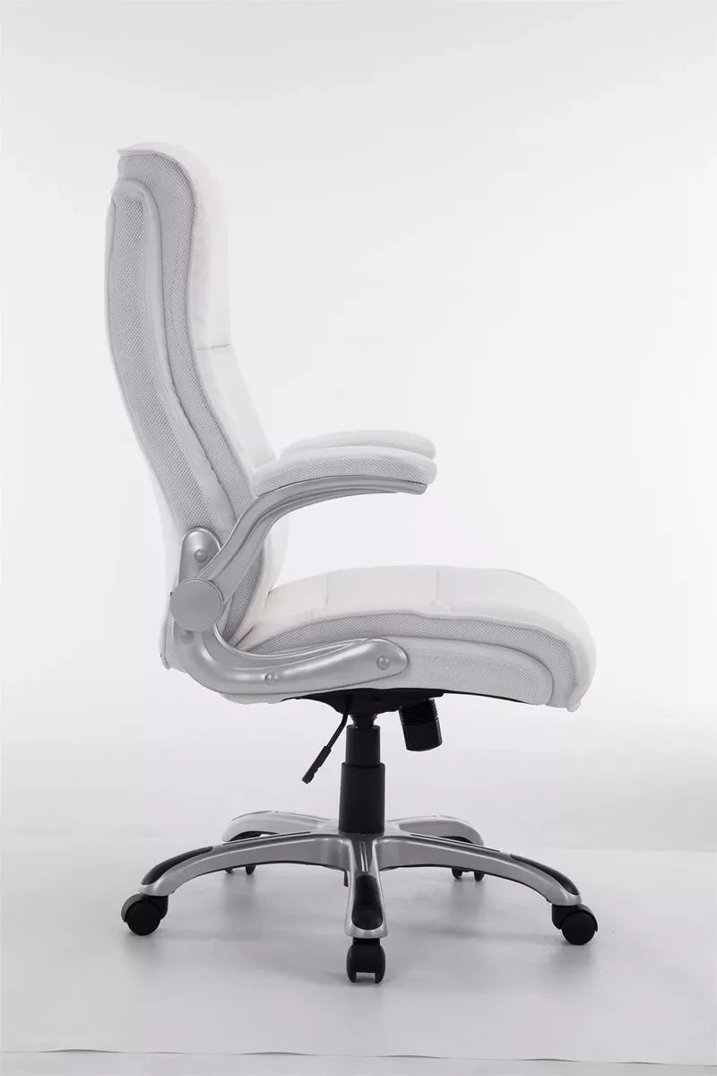 The office chair is ideal for tall and heavy people, because the gas spring is designed for long-term use up to 150 kg. It is an office chair with high-quality upholstery and artificial leather upholstery. Faux leather covers have the advantage that they are elastic and straighten again when the load is removed. This not only looks nicer, but also extends the life of the seat cover. The seat height can be infinitely adjusted using the lever under the seat, which guarantees ergonomic sitting. The built-in rocking mechanism and folding armrests provide more freedom of movement. The frame of the office chair is made of sturdy plastic. It stands safely on five robust wheels. Whether it concerns hard floors or carpet, you always roll easily and loosely over the floor.