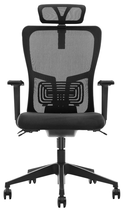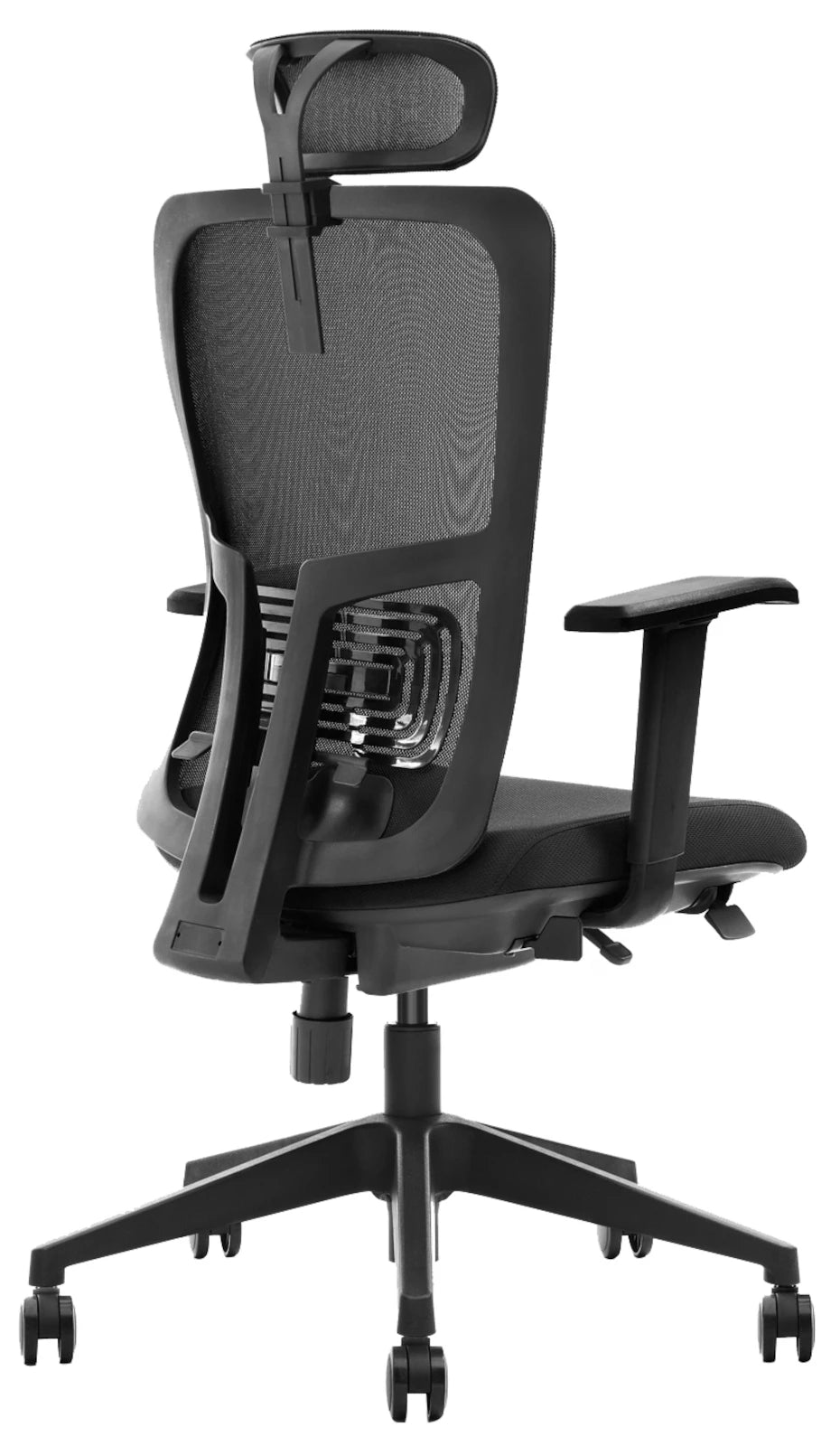 To support the neck, the headrest can also be adjusted to your height and the plastic armrests are height-adjustable. The seating area can also be moved forward a few centimeters to create more seating depth.