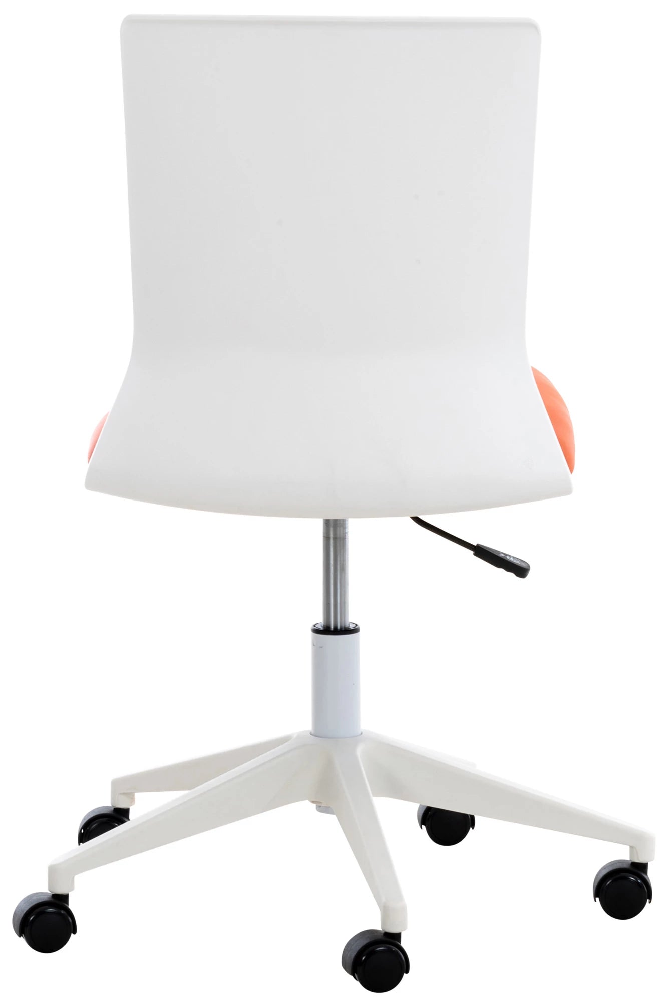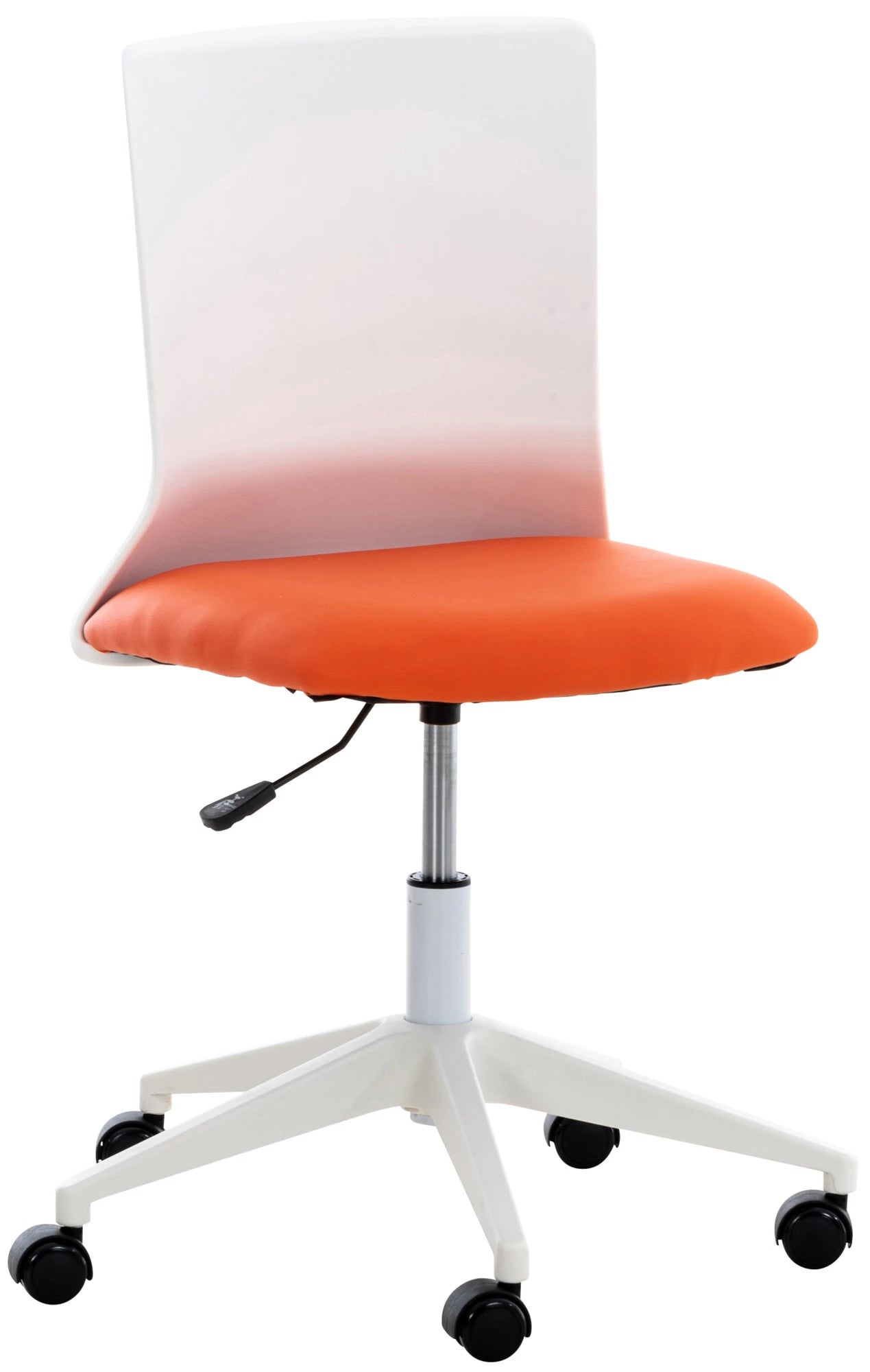 This Odalyss office chair not only convinces with its modern design, but no one can beat it when it comes to comfort. The swivel chair is comfortably padded and has a choice of artificial leather or fabric upholstery, making it particularly easy to maintain. The stepless height adjustment and backrest make it possible to sit comfortably for several hours. Stability is guaranteed by the white plastic frame. Thanks to the five smooth-running wheels, you can roll easily and loosely over the floor, both on hard floors and carpeting. The elegant frame and the mix of the colored seat with the white backrest give the whole thing that little bit extra and complete the design.
