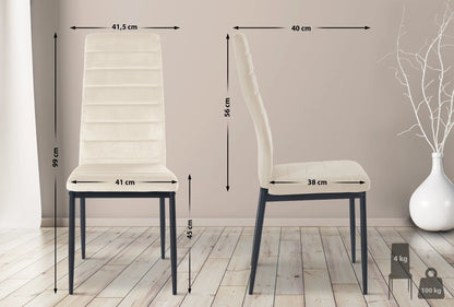 In And OutdoorMatch Dining Room Chair Deb - Cream - Velvet - High-quality Upholstery - Timeless Dining Room Chair - Classic Look