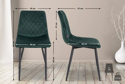 In And OutdoorMatch Dining room chairs Jacinth - Green - Set of 4 - Velvet - High quality upholstery - Luxury dining room chairs - Stylish appearance