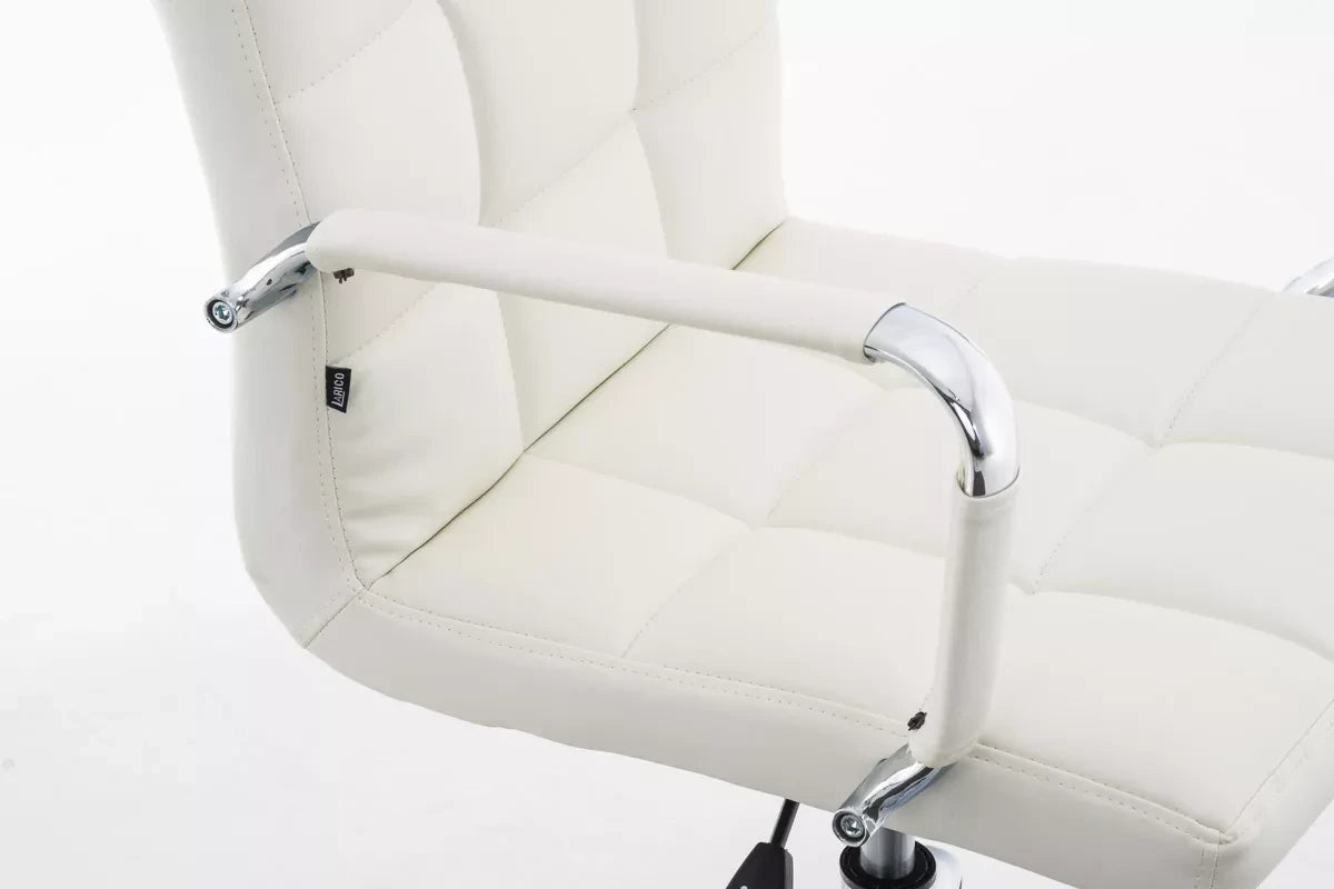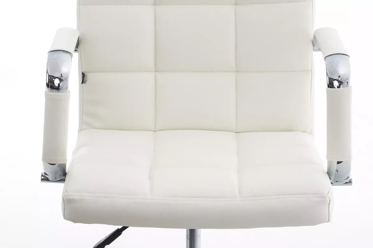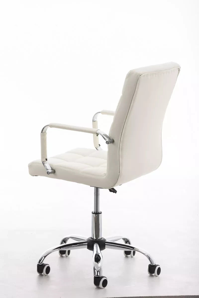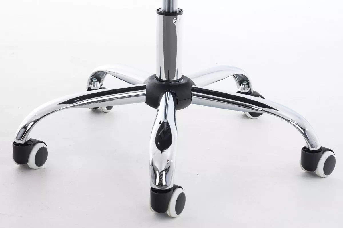 The office chair convinces with its modern design and offers high comfort while working thanks to the backrest. This exclusive Deli V2 office chair has very high-quality upholstery and artificial leather upholstery. Faux leather covers have the advantage that they are elastic and straighten again when the load is removed. This not only looks nicer, but also extends the life of the seat cover. The frame is made of metal with a chrome look and is therefore very stable. Thanks to the adjustable seat height, ergonomic sitting is guaranteed. The seat height is infinitely adjustable with the lever under the seat. The office chair stands safely on five smooth-running wheels. Whether it is hard floors or carpets, you always roll easily and loosely over the floor.