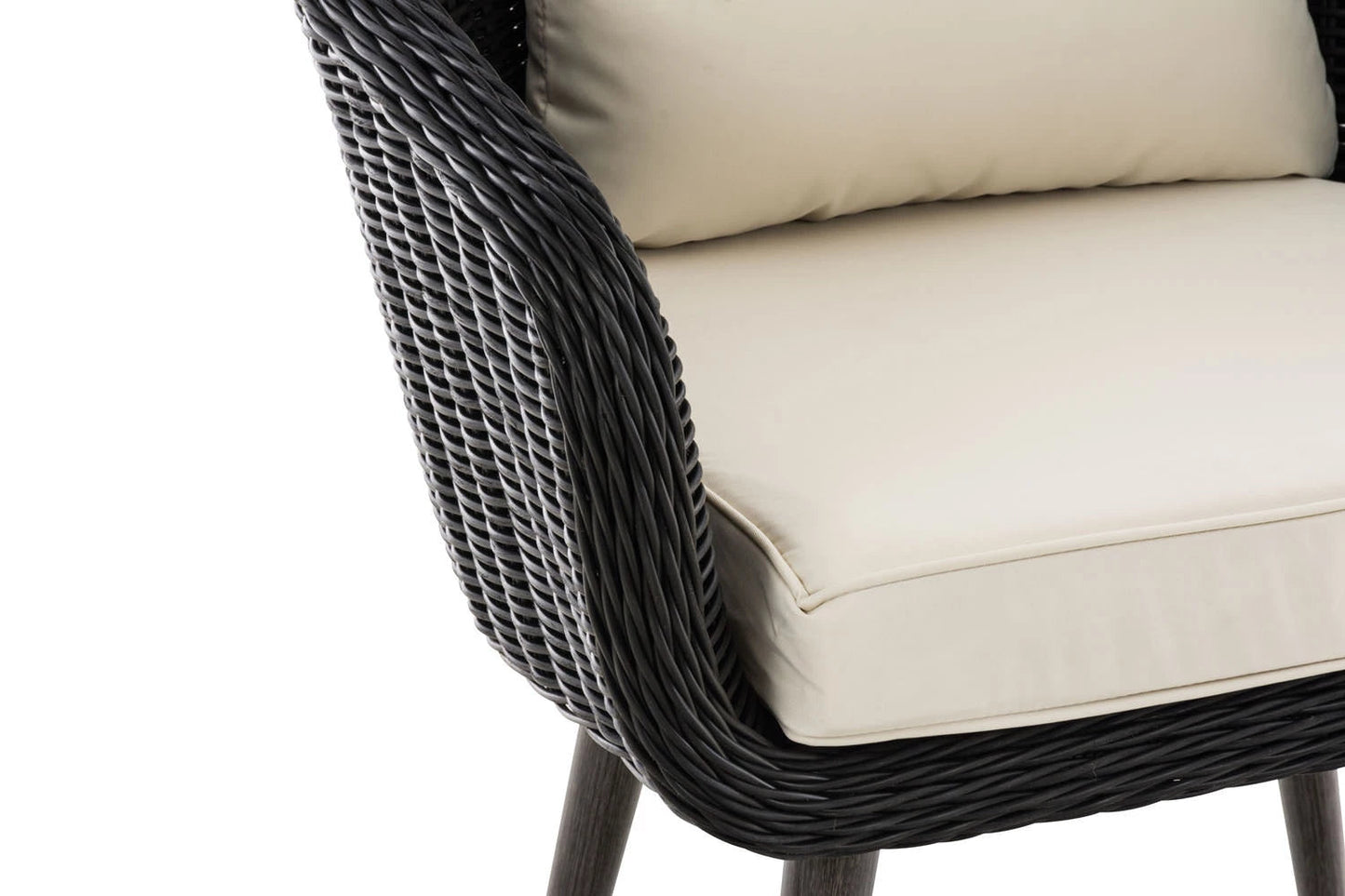 In And OutdoorMatch Armchair Juliana - Dark gray and cream white - 40 cm - Weatherproof - Polyrattan and aluminum - Scandinavian style - High-quality upholstery - For indoor and outdoor use