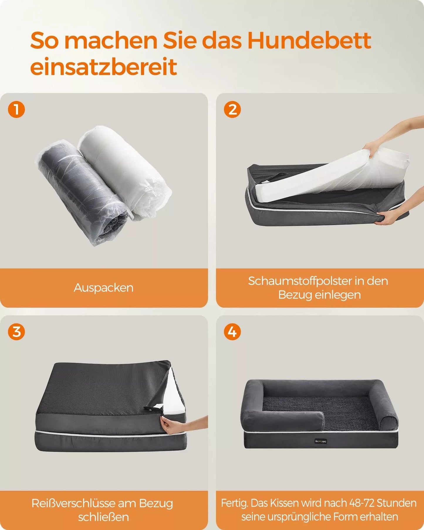 Soft and comfortable: The middle part of the dog bed is padded with soft foam and has a comfortable plush surface where your furry friend can relax or have a good night's sleep