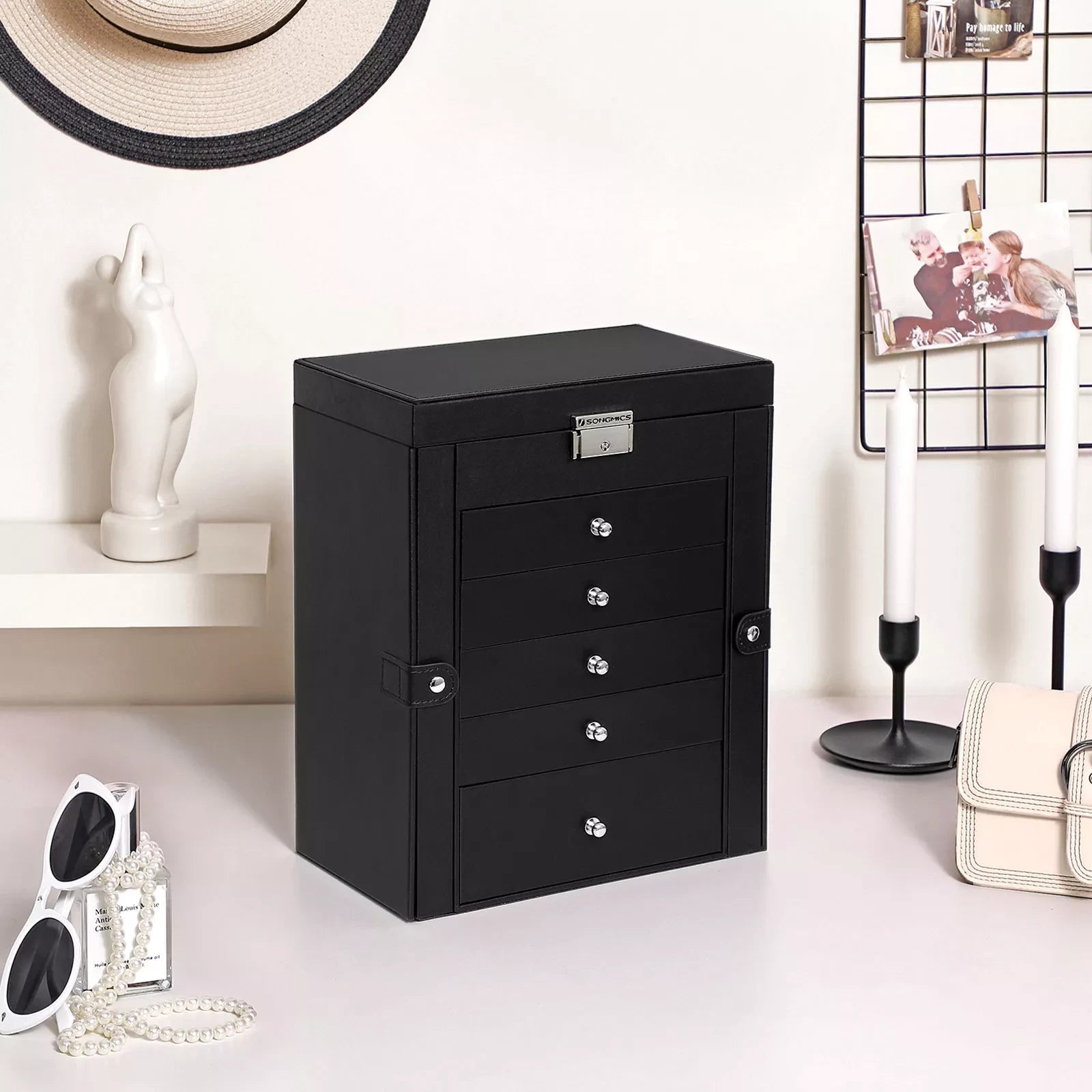 In And OutdoorMatch Jewelry Box Jonathan Ella - 6 Tier - Jewelry case - with side folding doors - Drawers - Mirror and closure - for rings - Earrings - Watches - Black