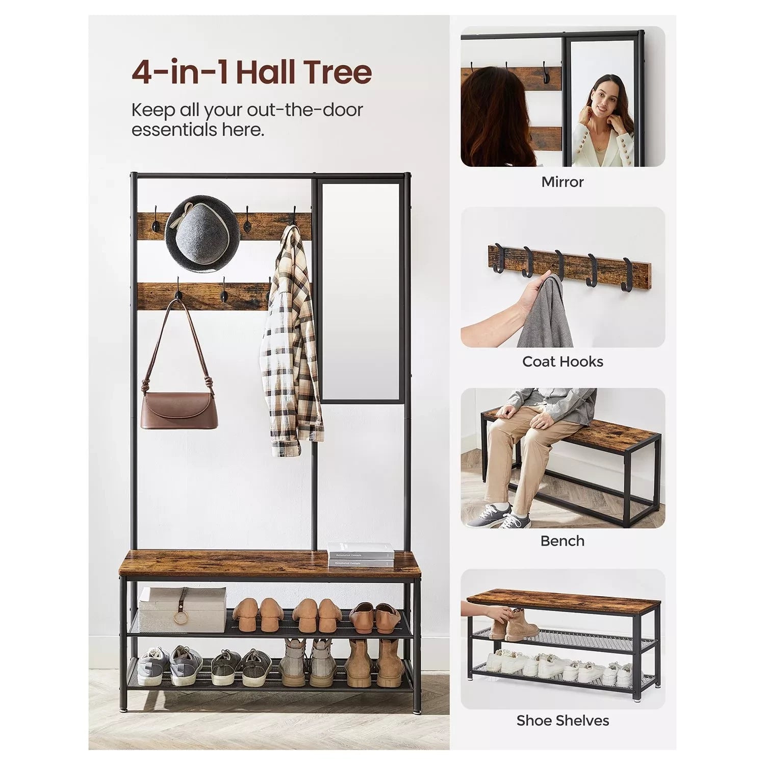 In And OutdoorMatch Industrial coat rack Alysson - With shoe rack and mirror - Wall coat rack - Industrial - With shelf - Hat shelf - 35x98x180cm