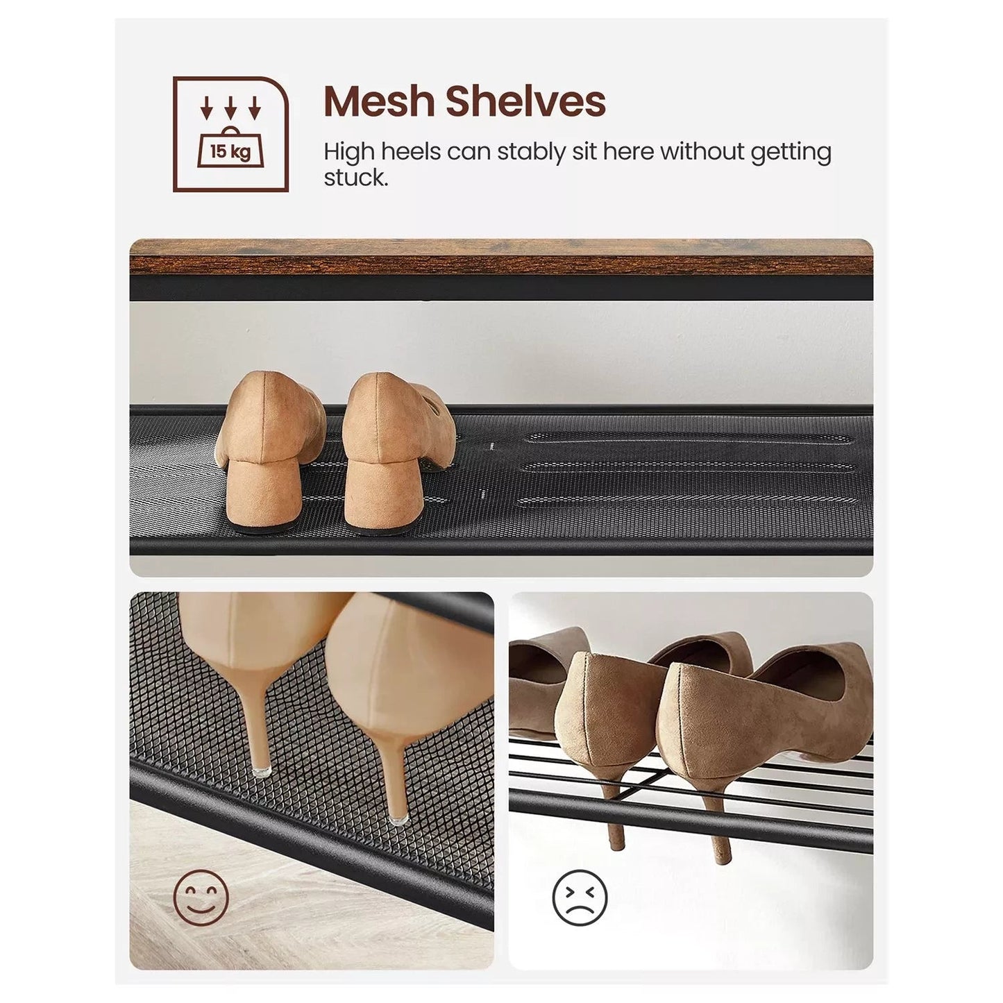 Product details: - Color: vintage brown-black - Material: chipboard, steel - Dimensions: 35 x 98 x 180 cm (D x W x H) - Weight: 15.9 kg - Max. static load per hook: 5 kg - Max. Static load per truss plank: 15 kg - Max. static load of the seat: 100 kg Scope of delivery: - 1 x wardrobe - 2 x anti-tip supports - 1 x accessory pack - 1 x instructionsInand Outdoormatch Notes: - For safety reasons, children should not climb on or play with this product. - Use the included anti-tip bracket to mount the product on the wall. - The maximum static load capacity of the chair is 100 kg, do not exceed this.