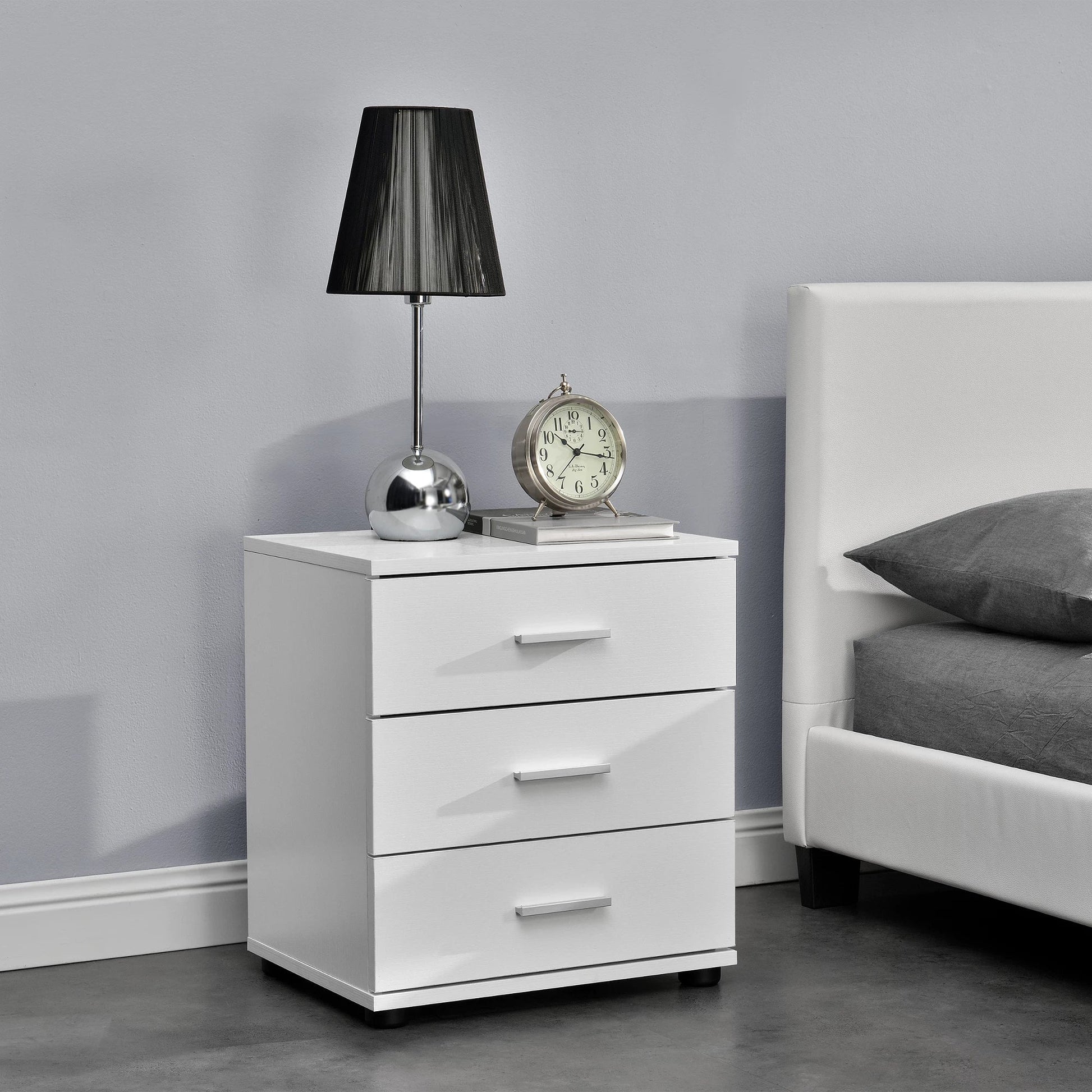 In And OutdoorMatch Bedside Table Lavonne - Chest of Drawers - With 3 Drawers - 45x34x50 cm - White - Chipboard