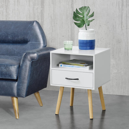 The stylish bedside table or side table with drawer and open compartment is an ideal choice for your bedroom or living room.