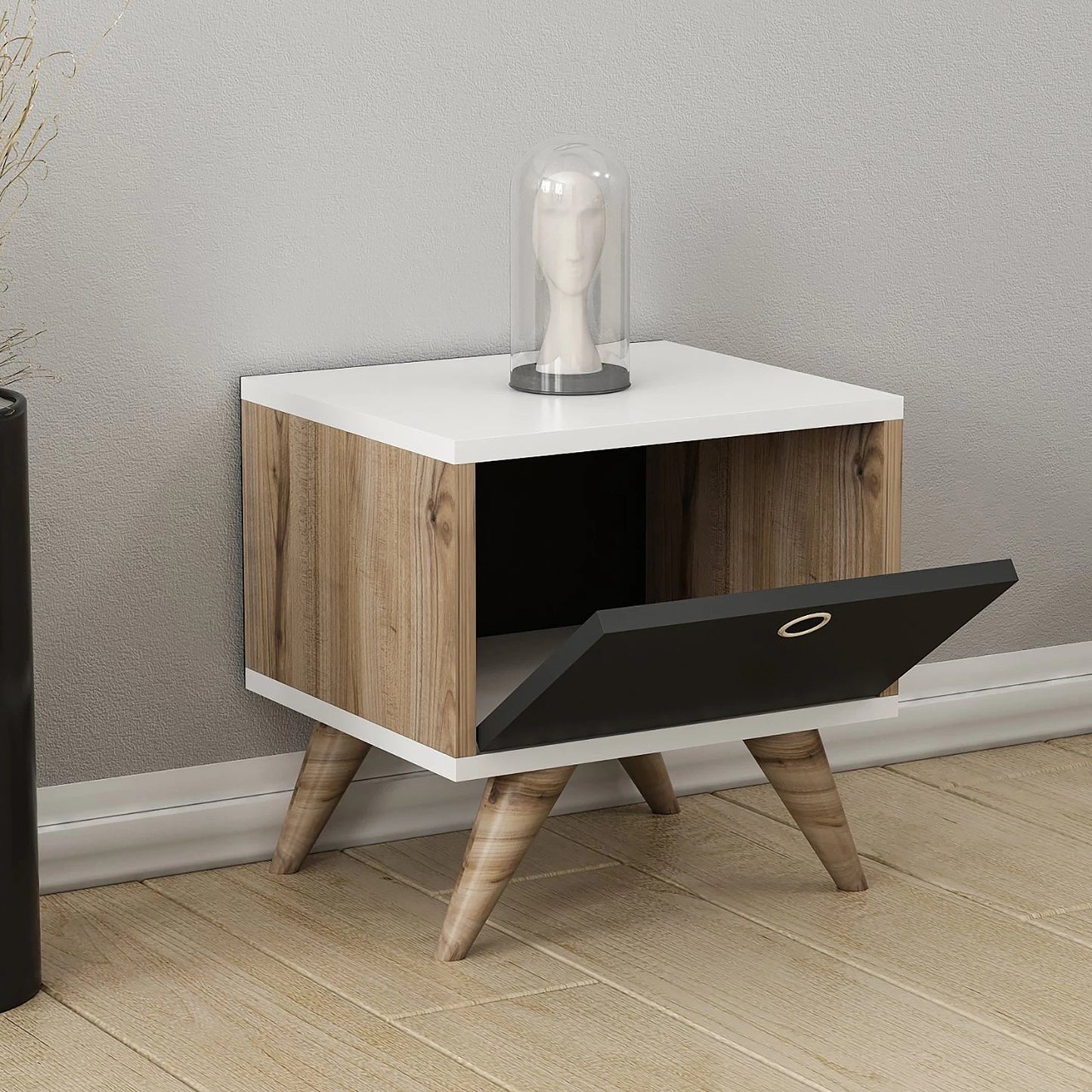 In And OutdoorMatch Bedside table Tyler - 41x40x35 cm - White, Oak and black - Chipboard - Stylish Design