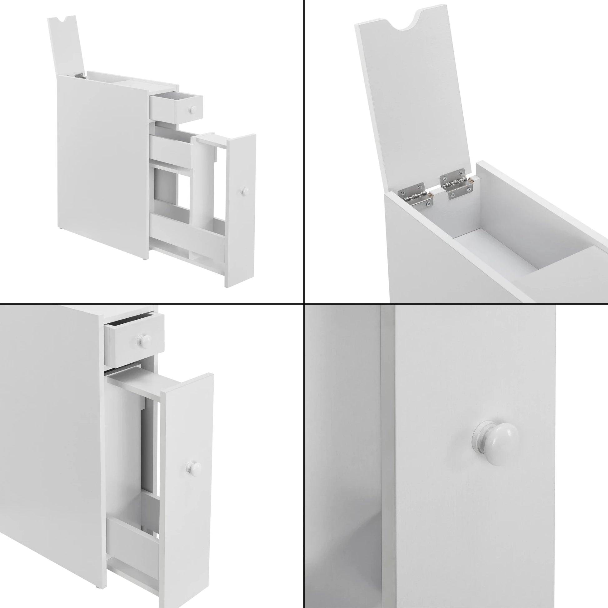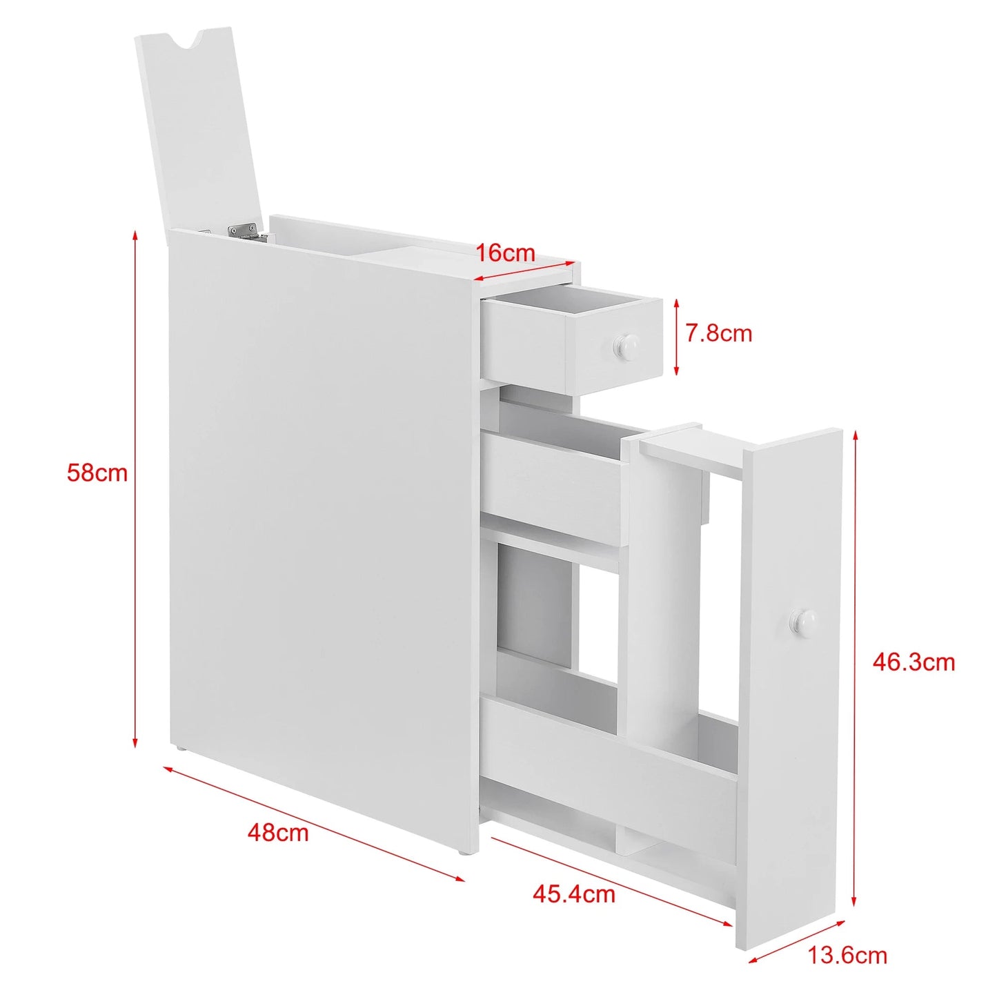 The narrow and space-saving multifunctional cabinet offers countless options for storing all your belongings. Ideal for your bathroom, kitchen or living room, for example.