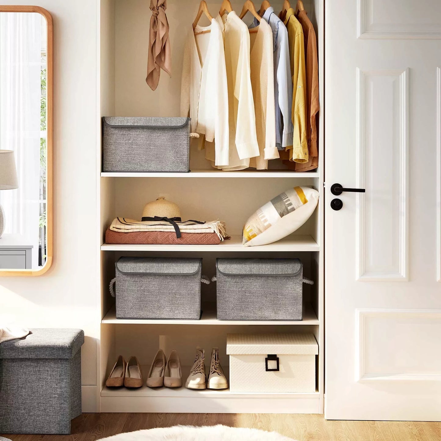 Product details: - Color: Gray - Material: Cardboard, non-woven fabric, cotton handles - Dimensions per box: 38 x 25 x 25 cm (L x W x H) - Total weight: 2.1 kg - Max. static load per box: 10 kg Scope of delivery: - 3 x storage box - 3 x cardboard base - 6 x handle Inand Outdoormatch Notes: - The product is not machine washable! For daily cleaning, wipe the product with a damp cloth and allow it to air dry.- If the product has a new odor after unpacking, please place it in a well-ventilated place for a short time.- Adjust the product do not expose to direct sunlight. Do not place this product in an environment with high humidity.