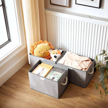 In And OutdoorMatch Storage Boxes Jett - Set of 3 - Fabric Boxes - with Lids - Cotton Handles - Linen Look - Gray