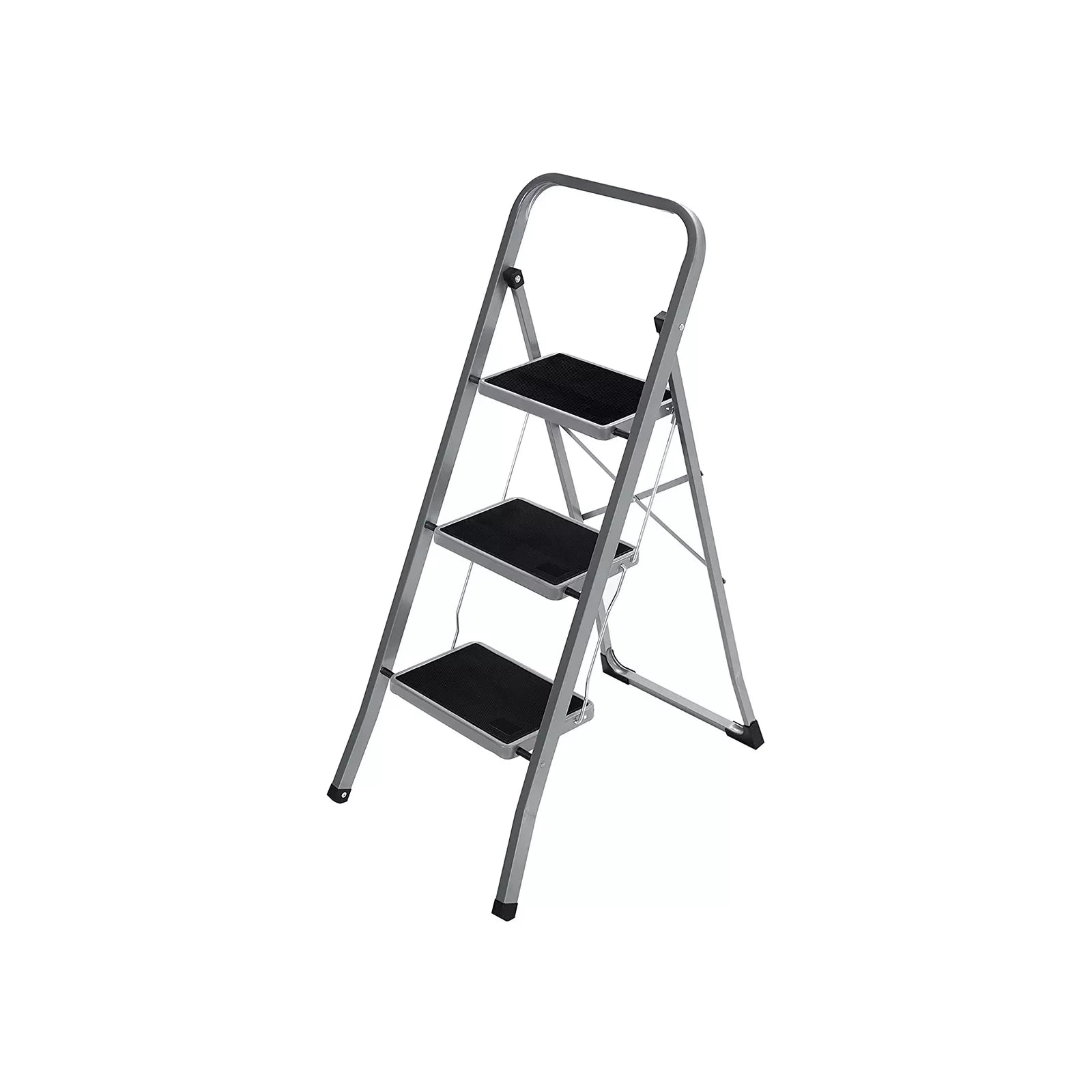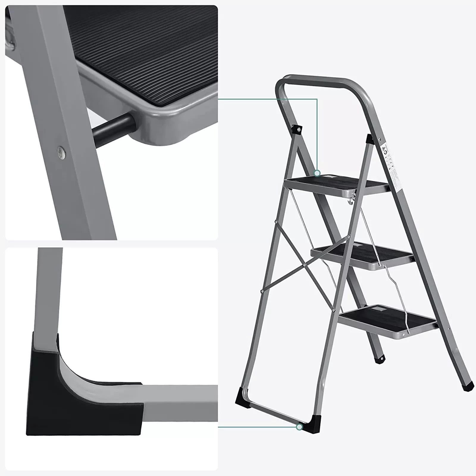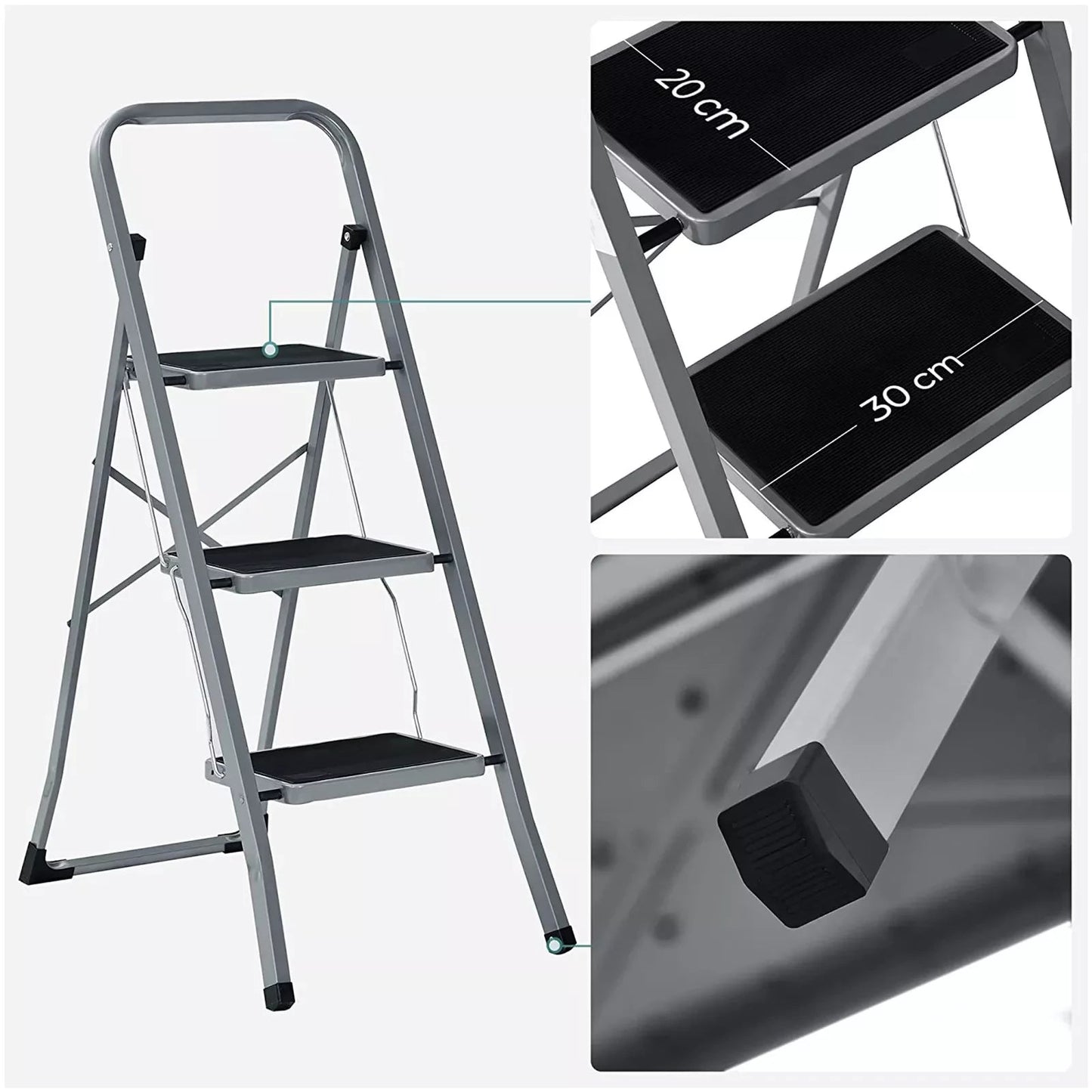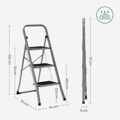 In And OutdoorMatch Folding step Garry - with 3 steps - step stool - ladder - 20 cm wide steps - with non-slip rubber mats - with carrying handle - load capacity up to 150 kg - made of steel - gray/black