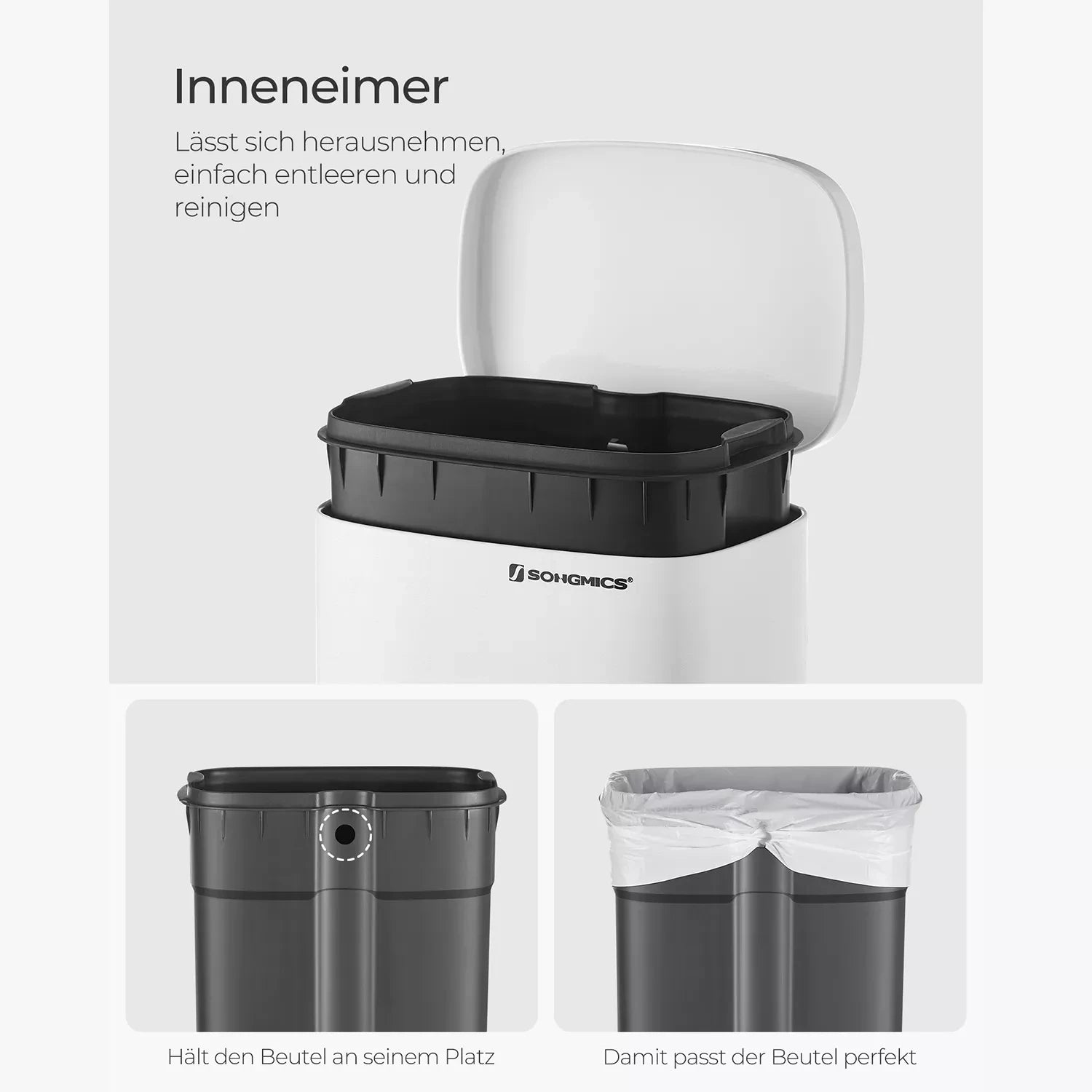 In And OutdoorMatch Pedal bin Bette - 30L - Trash bin waste separation - Stainless steel - 1 part loose - White - soft close