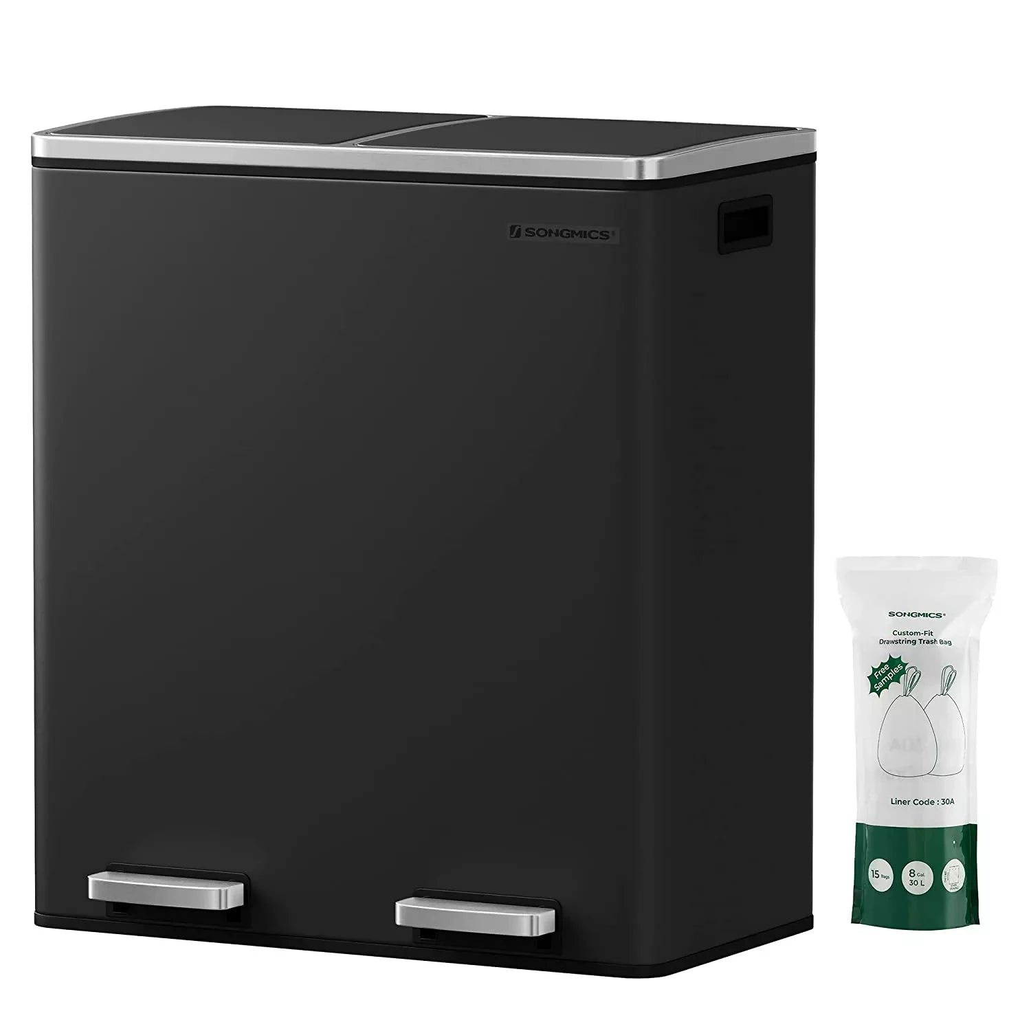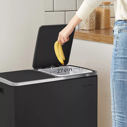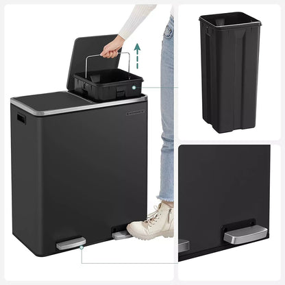 In And OutdoorMatch Pedal bin Sim - Trash bin waste separation - Stainless steel - 2-part separation - Black - 65x58x32cm