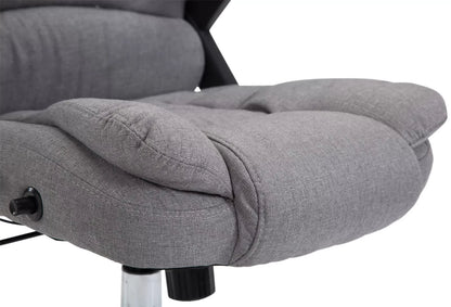 The stylish Biancamaria Mike executive chair is characterized by its attractive design and when it comes to comfort, no one can beat it. The high-quality upholstery with classic fabric upholstery ensures a comfortable seating experience. In addition, ergonomic sitting is guaranteed thanks to a continuously adjustable seat height and a built-in rocking mechanism ensures more freedom of movement. Thanks to the maximum load capacity of 150 kg, the office chair is ideal for tall and heavier people. The frame of the office chair is made of metal with a chrome look and stands firmly on five smooth-running wheels. Whether hard floors or carpets, you always roll easily and loosely over the floor.