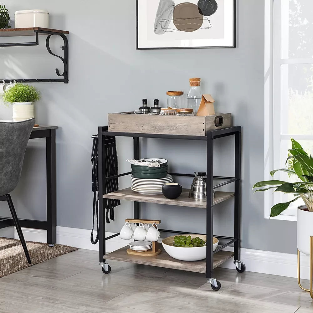 In And OutdoorMatch Serving trolley on wheels Laurel - Kitchen trolley - Industrial - Serving trolley - Bar trolley - Drinks trolley - 4 trays - 40 x 12.5 x 86 cm