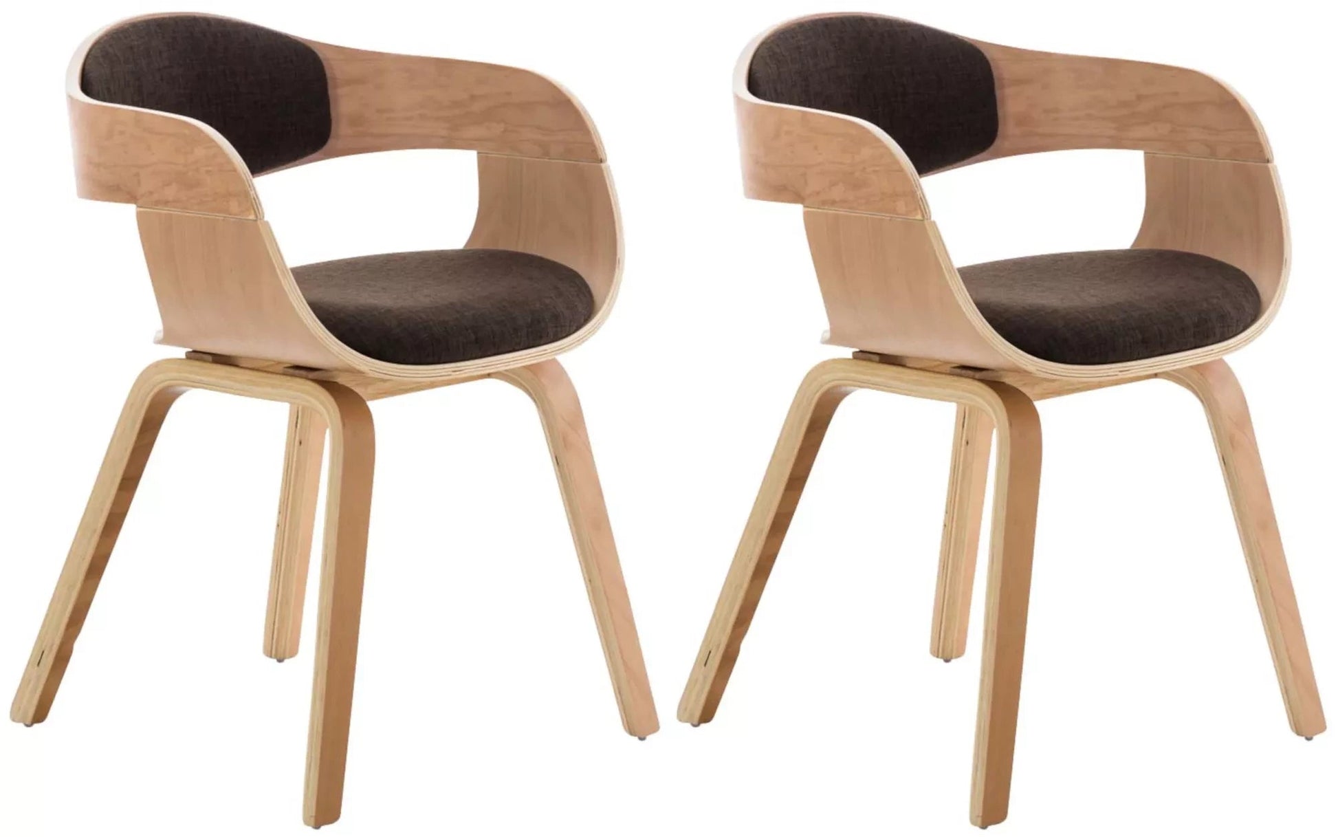 In And OutdoorMatch Chair Louvenia - Dining room chair - Wood - Brown fabric - Wooden legs - set of 2 - Seat height 48cm - deluxe