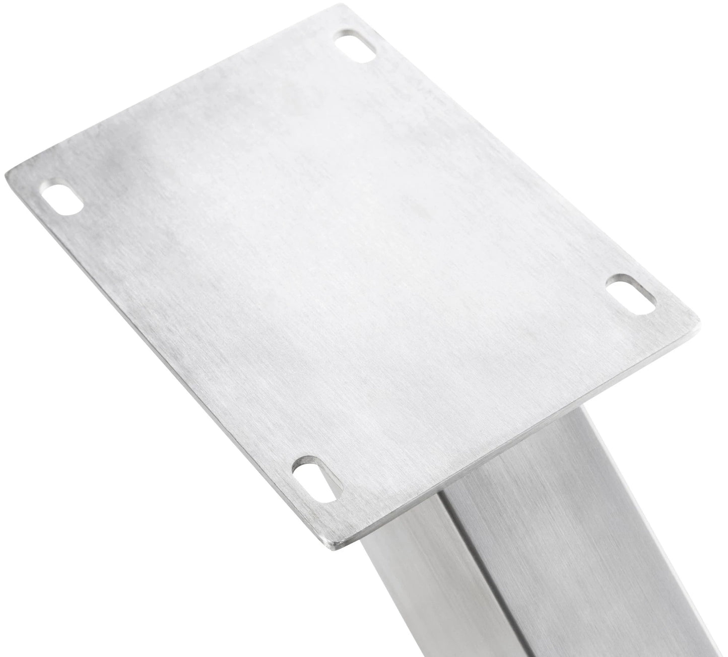 The brushed look of the frame allows for a wide range of applications, both in living and working spaces. These table legs are ideal for coffee, living room and dining room tables, but can also be used as a base for a conference table. The table runners of sturdy square profiles are made of high-quality stainless steel. The holes for the mounting screws are prepared for easy installation. The screws are of course included in the delivery. High-quality floor protectors are also attached to the feet. These prevent scratches on the floor and make it possible to compensate for minor irregularities.