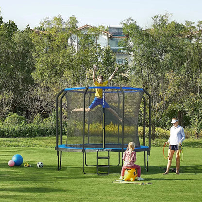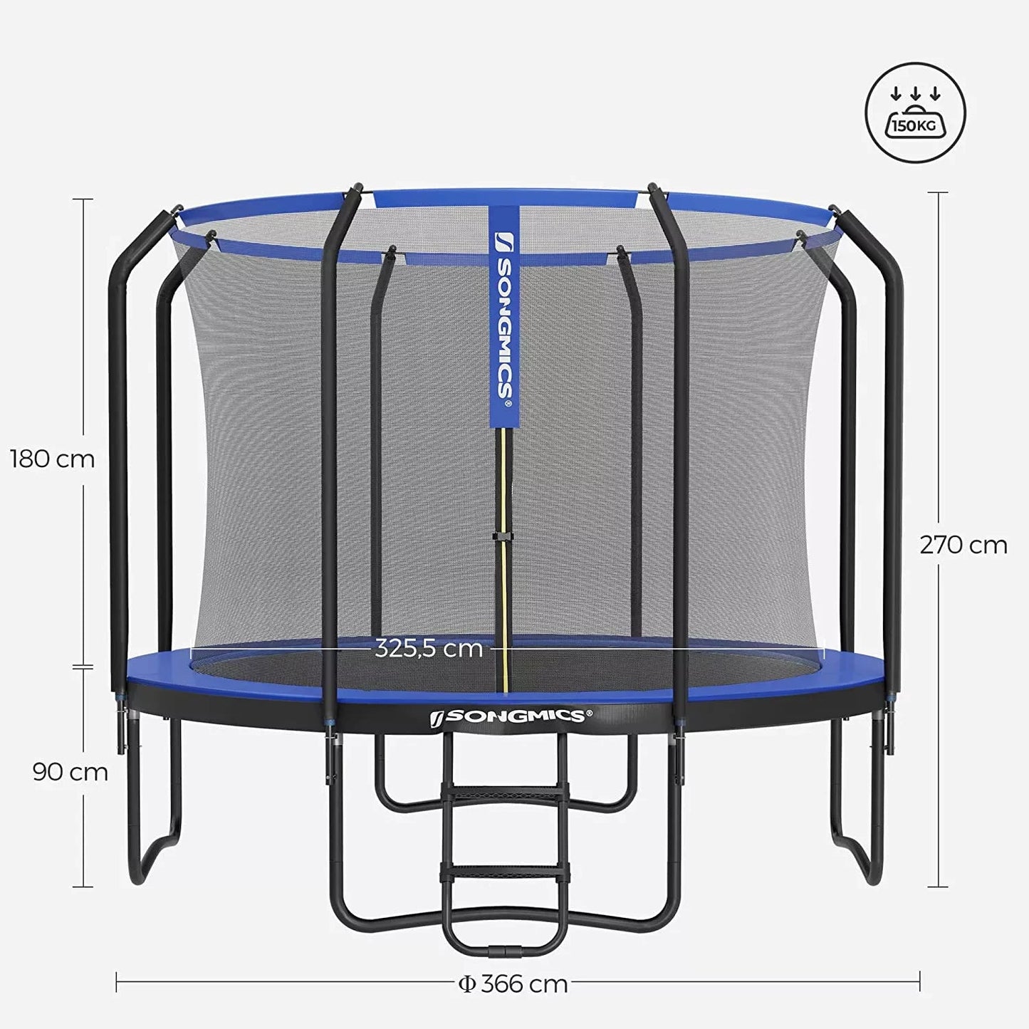 In And OutdoorMatch Trampoline Adolfo - 366 cm - Blue - Trampoline with safety net and ladder - padded frame - for children and adults - inner net