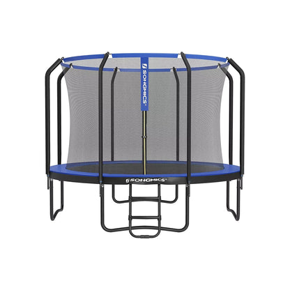 Fun in the garden: This trampoline from Inand Outdoormatch offers both you and your family a 1A jumping experience. Because safety is our priority, the galvanized and powder-coated frame is stable and rust-resistant. The 4 W-shaped legs keep the jumping mat in balance. This jumping device is of course destined as a gift for your children. But you can also try it, because the trampoline can carry up to 150 kg. Included in delivery are a jumping mat, an edge cover, a safety net, handrails and a ladder - everything you need to have fun outdoors! Product details: color: Dark blue Material: Legs, safety net edge: Galvanized, powder-coated steel Outer ring frame, T-bar connectors: Galvanized steel Springs: Zinc Ladder: PP plastic (0.9 g/cm), steel tube Jumping mat: PP plastic (265 g/m) Edge cover: PVC (310 g/m), EPE foam Safety net: PE plastic (95 g/m) Dimensions: Frame with jumping surface: 305 x 76 cm ( x H) Safety net: 180 cm (H) Ladder: 41 x 105 cm (W x H) Distance between ground and trampoline surface: 76 cm Max. static load capacity: 150 kg. Scope of delivery: 1 x trampoline 1 x ladder 1 x accessory package 1 x manual