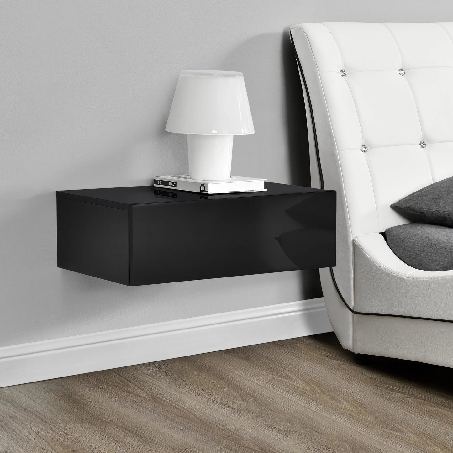 In And OutdoorMatch Wall Shelf Kasey - With Drawer - Floating - 46x30x15 cm - Black Glossy - Stylish Shelf
