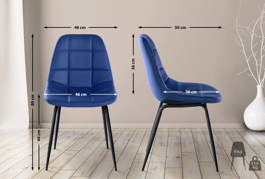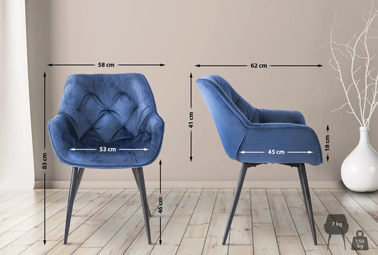 In And OutdoorMatch Eetkamerstoelen Meredith - Blauw - Set van 2 - Fluweel - Hoogwaardige bekleding - Luxe eetkamerstoel - Stijlvolle uitstraling