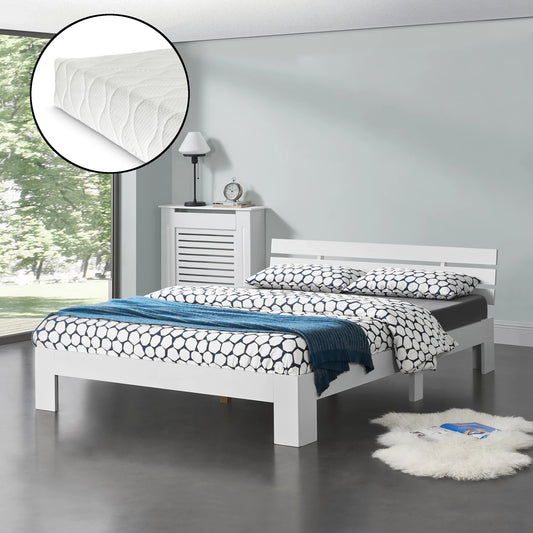 In And OutdoorMatch Houten Bed Stefan - Grenen - Met Matras - 140x200 cm - Wit - Slijtvast - Made in the EU
