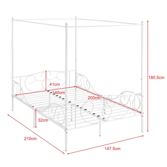 In And OutdoorMatch Metalen hemelbed Reyna - met bedbodem en matras - 140x200 cm - wit - stabiel frame - minimalistisch design