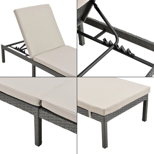 In And OutdoorMatch Ligbed Myles - Ligbed - Zonnebed - 198x60x27 cm - Beige en Dakr Grey - Staal, Polyrattan en Stof - Verstelbare rugleuning