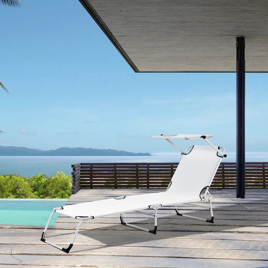In And OutdoorMatch Ligstoel Kianna - Met Zonnekap - 187x53x27 cm - Wit - Staal en PVC - Luxe Look