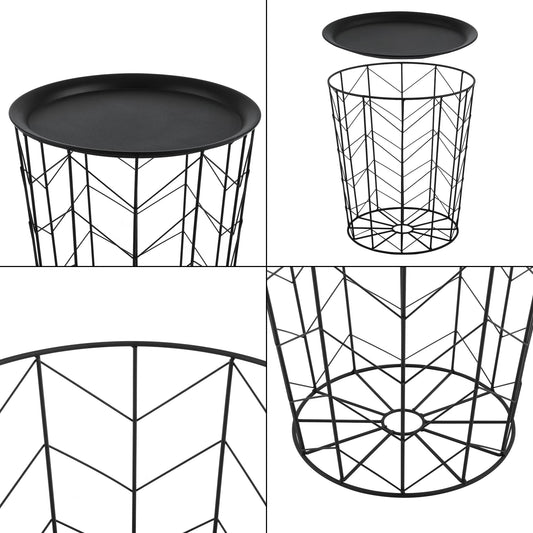 In And OutdoorMatch Bijzettafel Ephraim - Set van 2 - Met Afneembaar Tafelblad - Zwart - Metaal - Stijlvolle mand