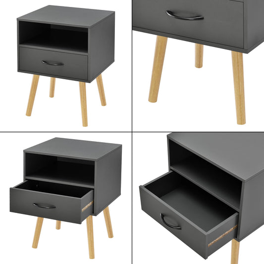 In And OutdoorMatch Nachtkastje Genevieve - Met Lade en Open Vak - 57x42x40 cm - Donkergrijs - Modern Design