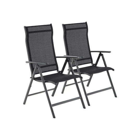 In And OutdoorMatch Tuinstoelen Lucio - Set van 4 - Klapstoelen - Buitenstoelen - Met Robuuste Aluminium Rrame - Rugleuning - Verstelbaar in 8 standen - Belastbaar tot 150 kg - Zwart