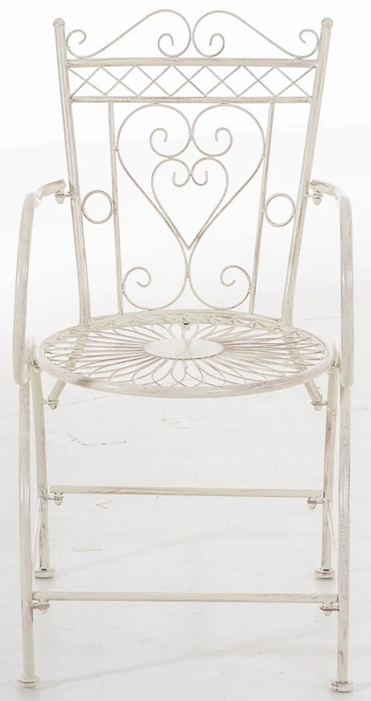 In And OutdoorMatch Tuinstoel Rue - Wit - Set van 2 - Metaal - Klapstoel - Buitenstoel - Stoel - Hoge kwaliteit - Stijlvolle tuinstoel - Handgemaakt antiek patina