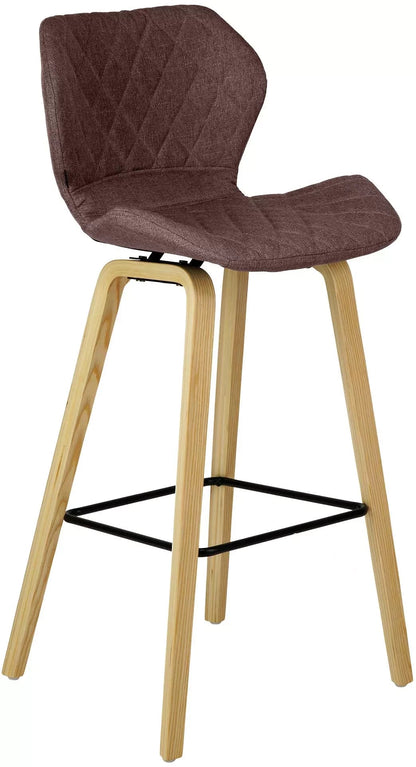 In And OutdoorMatch Barkruk Curt - Bruin hout - 80cm zithoogte Set van 1 - Voor keuken en bar - Met rugleuning - Ergonomische barstoelen