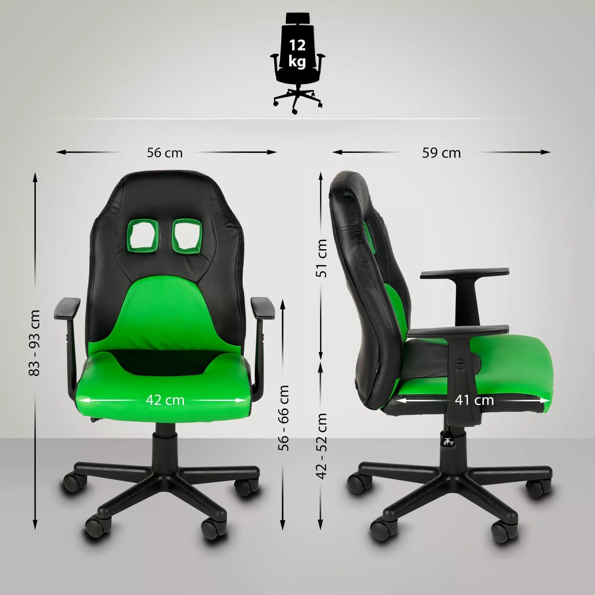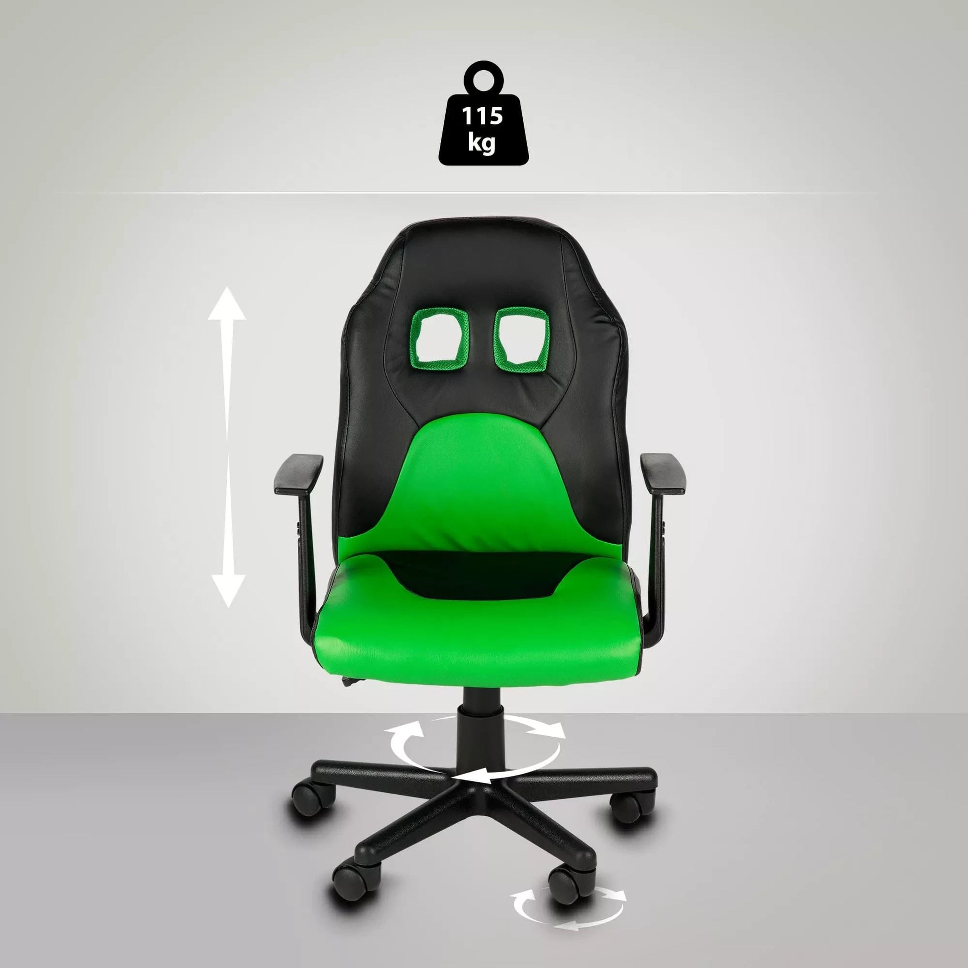 In And OutdoorMatch Bureaustoel kinderen Bria - Kunstleer - Groen - Op wielen - Ergonomische bureaustoel - Voor kinderen - Gamestoel - In hoogte verstelbaar
