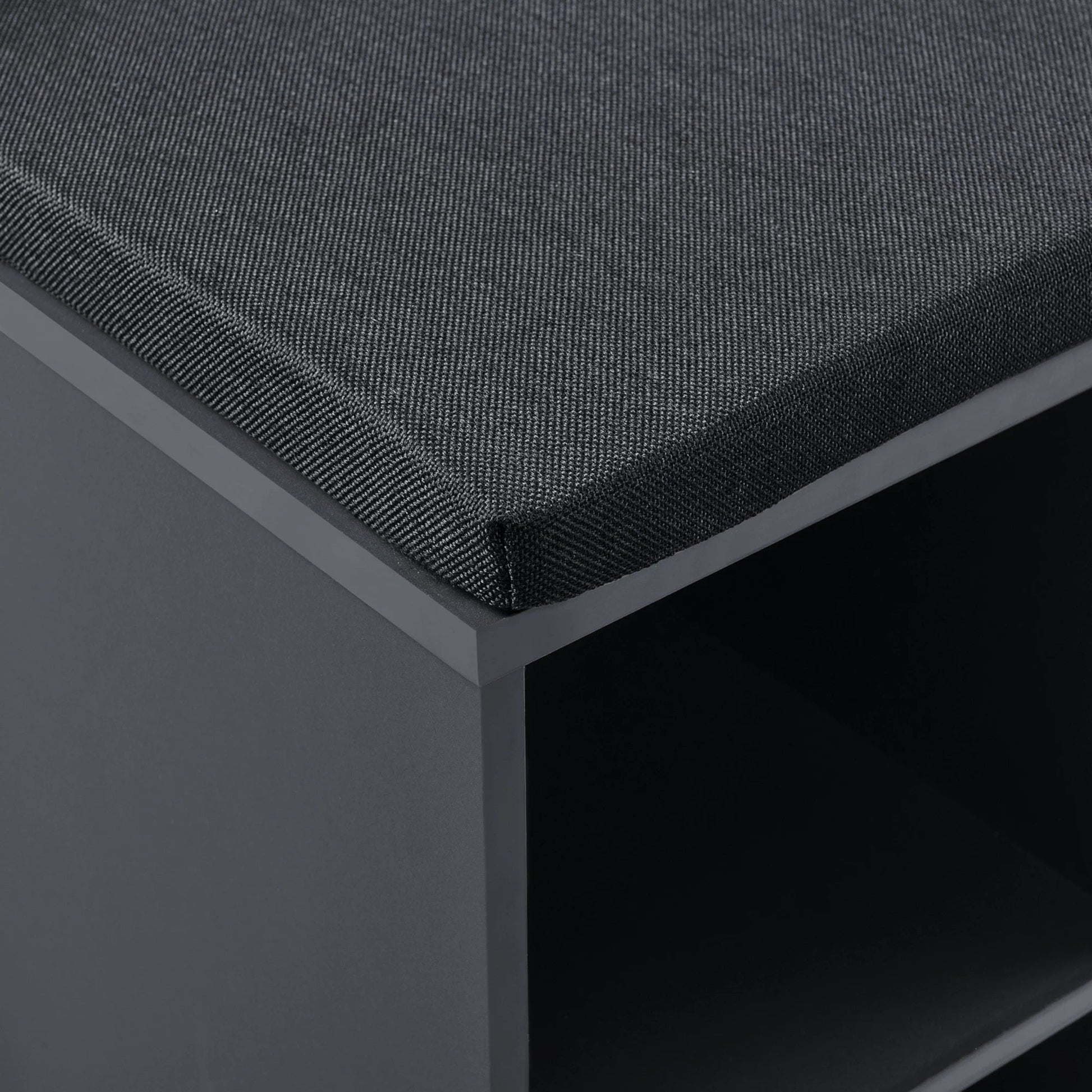 In And OutdoorMatch Schoenenkast Darrell - 103x30x48 cm - Met Zitkussen - Donkergrijs en Zwart - Spaanplaat en Stof - Modern Design