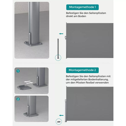 In And OutdoorMatch Zijluifel Lelah - Uitschuifbaar - Grijs - 200x400cm - Inkijkbescherming - Zonwering - Balkon - Terras - Tuin
