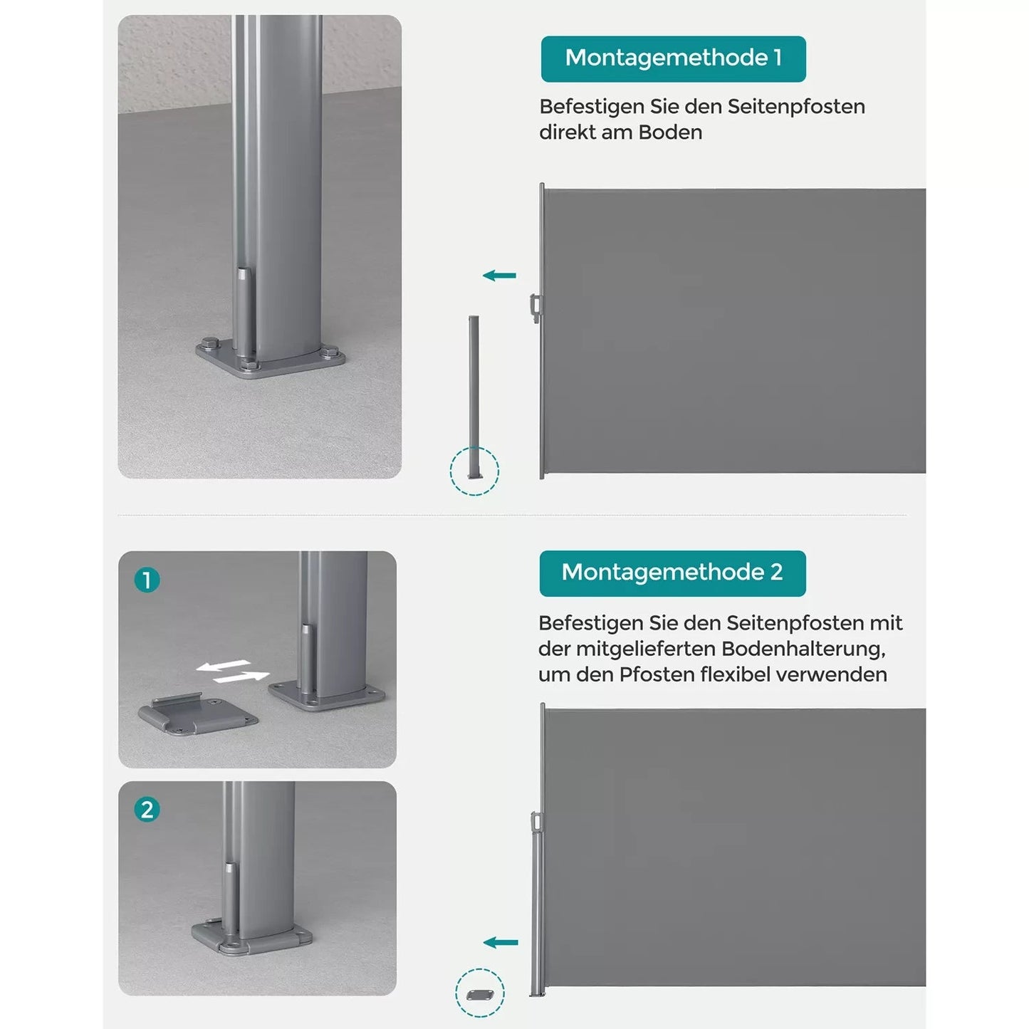 Privacyscherm voor terras en balkon Dankzij de zijluifels van Inand Outdoormatch kunt u vrolijk op uw terras ontbijten zonder bang te hoeven zijn voor nieuwsgierige blikken van uw buren. Je kunt de schaduw ook gebruiken om schadelijke zonnestralen te blokkeren. Zo kunt u heerlijk ontspannen en buiten genieten van de warme zomerdagen. Geschikt voor binnen- en buitenruimtes Je kunt dit allround talent zowel binnen gebruiken, zoals in kantoortuinen, spreekkamers, kleedkamers of fotostudio's, als buiten, zoals op je terras, in de tuin, naast je zwembad of op uw camping. Productdetails: - Kleur: antraciet - Materiaal: aluminium, 280 g/m PU-gecoat, waterafstotend polyester (zonweringstof) - Afmeting: 200 x 400 cm (H x L) - Gewicht: 11 kg Leveringsomvang: - 1 x zijluifel - 1 x accessoirepakket - 1 x handleiding (DE, EN, IT, ES, FR)