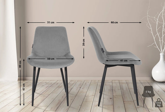 In And OutdoorMatch Eetkamerstoel Deniz - Donkergrijs - Fluweel - Hoogwaardige bekleding - Moderne eetkamerstoel - Stijlvolle uitstraling