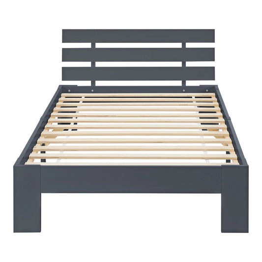 In And OutdoorMatch Houten Bed Audrey - Grenen - Met Bedbodem - 80x200 cm - Donkergrijs - Snelle montage