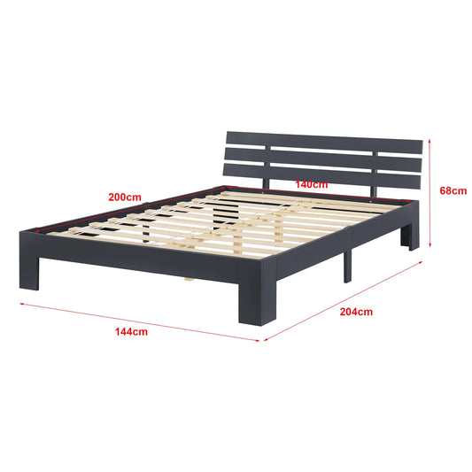 In And OutdoorMatch Houten Bed Napoleon - Grenen - Met Bedbodem - 140x200 cm - Donkergrijs - Snelle Montage